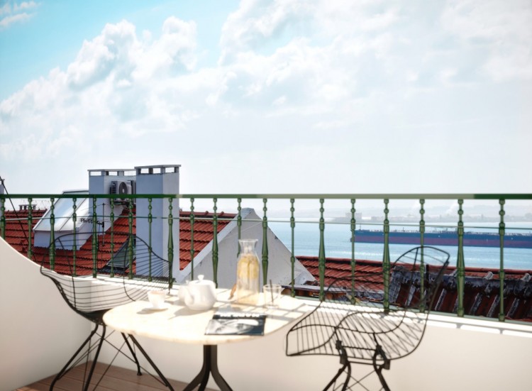 The apartments have surfaces between 30 and 102 m2. The upper floors have views of the Tagus River and the sloping roofs of the Madragoa district.