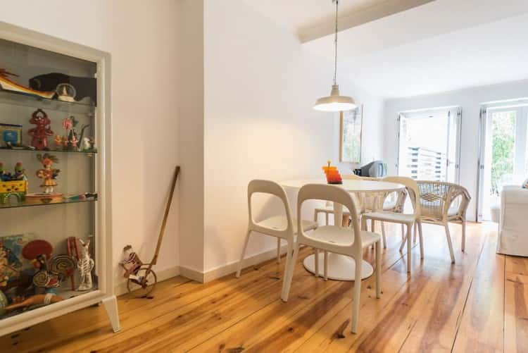 Refurbished apartment available in the city centre of Lisbon, in Principe Real. It's a two bedroom apartment with an open kitchen with a small living room. What's magical about this place, is that on the back there is a terra