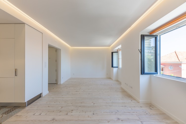 Located on the 2nd floor without elevator, this bright and shining apartment offers views over the river Tejo from a spacious open plan living and dining area.