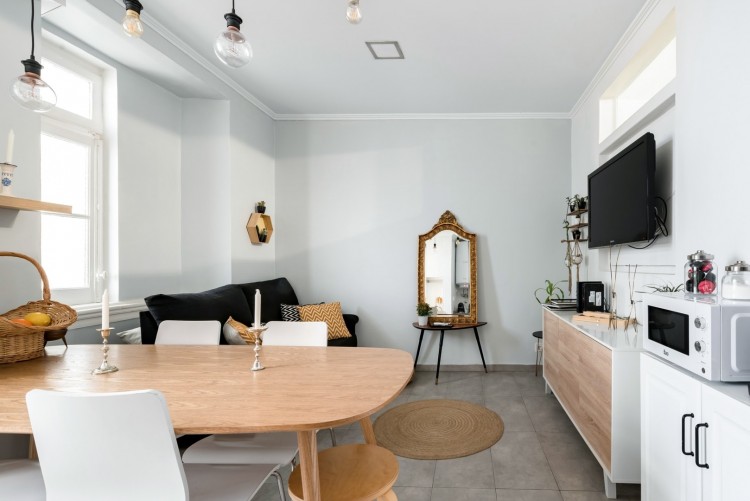 Recently refurbished with great attention to aesthetics and functionality, features an open space kitchen and living room, original hardwood floors, 2 bedrooms and 2 extra interior rooms, luxurious and spacious bathroom and plenty of natural light. The building has been fully renovated at the end of last year and inside the apartment all the plumbing, electrics, kitchen and bathroom have also been renovated and replaced. The apartment comes fully furnished and equipped - the complete key-ready package.