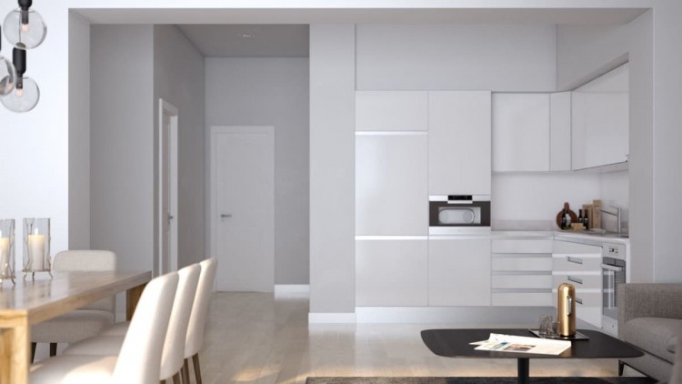 The 8 apartments accommodate T1+1 and T2 apartments with areas ranging from 90m2 to 115 m2.
