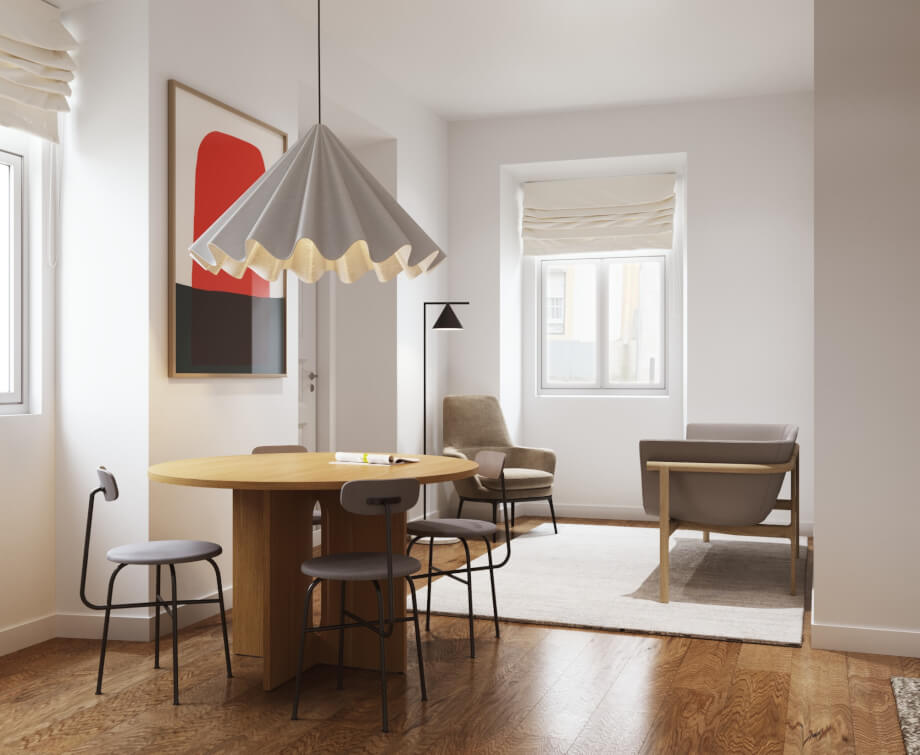 Each apartment features spacious, light-filled interiors, high-quality finishes, and strong aesthetic coherence. The architectural concept blends traditional Lisbon character with contemporary design, creating a balanced and timeless residential environment.