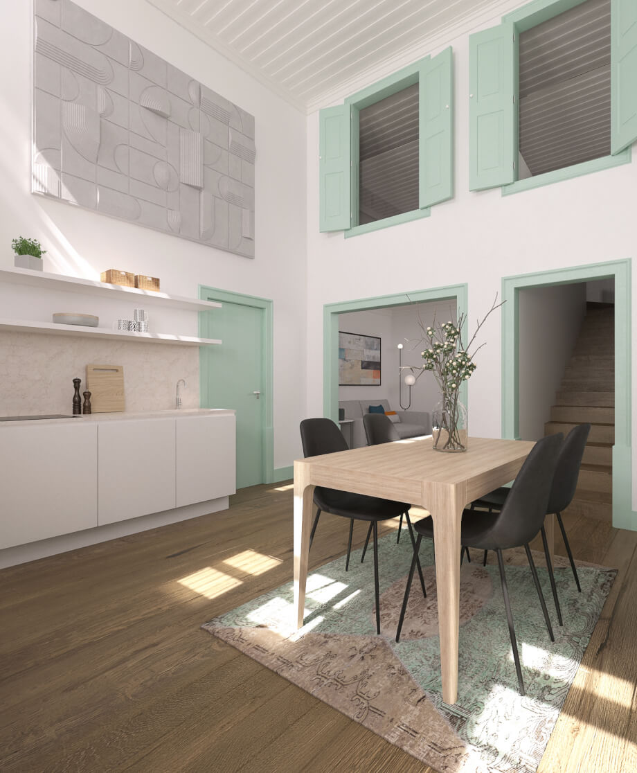 Given their historical character, the challenge was even bigger: to unify the two old buildings into one, creating more living spaces and taking advantage of the green spaces facing east. We took up the challenge head on and, after years of study and preparation, Independente 188 is being born, where we will have a total of 12 equipped units, with typologies from studio to two bedroom duplexes.