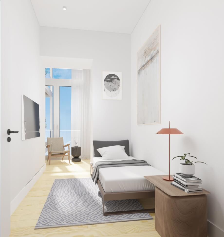 -T2 and T3 apartments with deep rehabilitation, consisting of 2 (or 3) bedrooms, 2 bathrooms, 1 living room with kitchenette and 1 terrace or balcony. All materials used in the construction process are exclusive and of superior quality.
