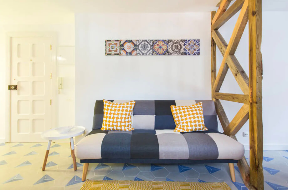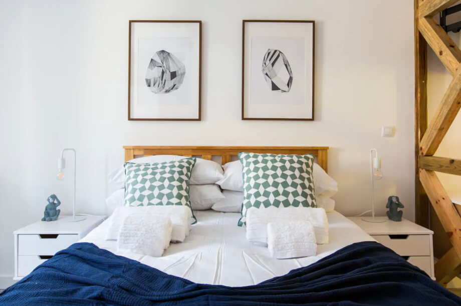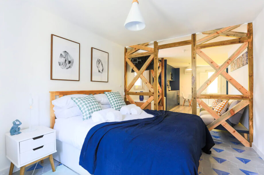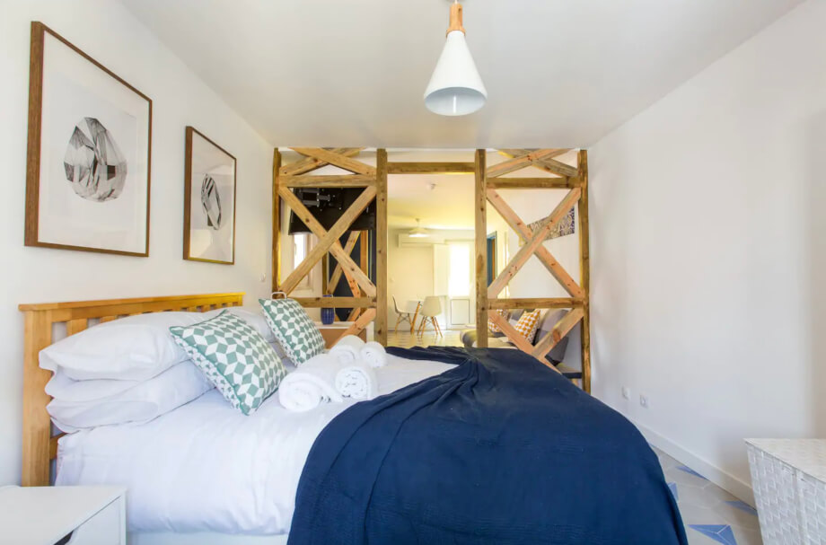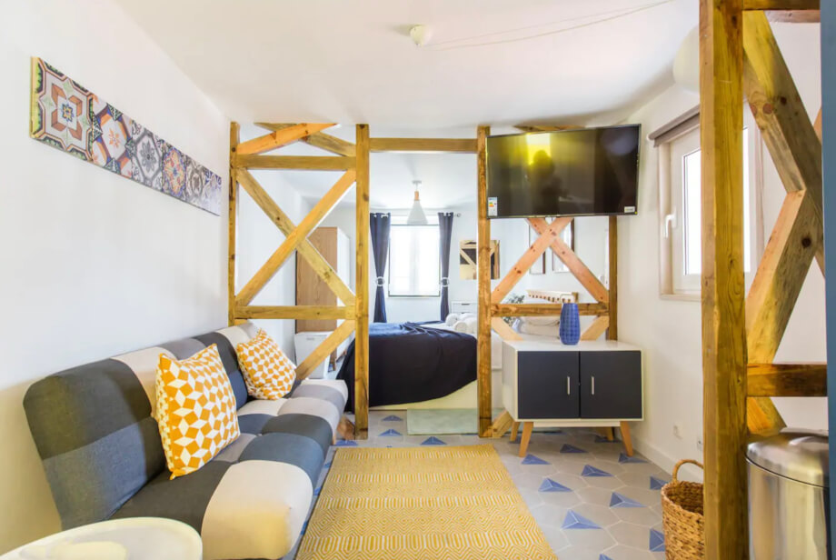 The Sol studio is a lovely studio apartment unit in Misericórdia, a historical neighbourhood in Lisbon! This studio apartment is fully renovated with a modern design aesthetics, featuring a mix traditional Portuguese tiling known as “azuleijos”. This unit has a fully furnished, functional and features an equipped kitchen, including a dishwasher, washing machine, mini fridge, water heater, built-in microwave and high-quality kitchen cabinetry.