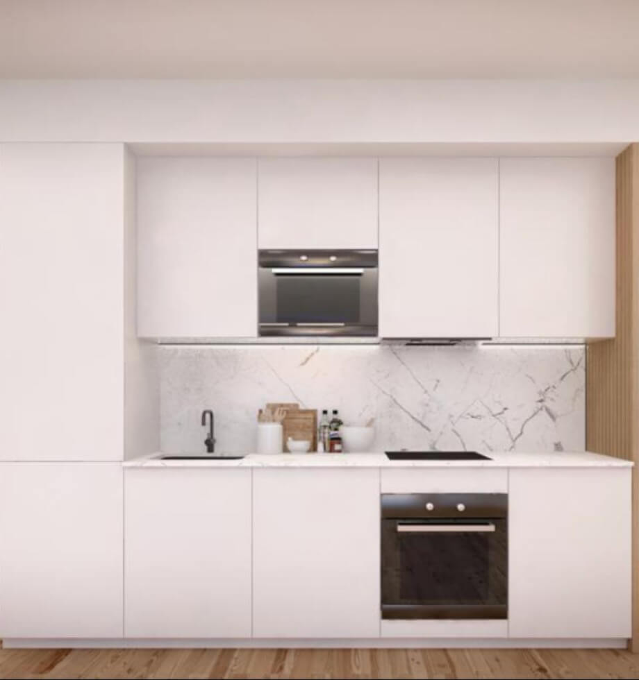 This apartment is a 2 bedroom 2 bathroom, one en-suite. The total indoor area is 81 sqm, with an open kitchen and living area. It will be fully renovated with high end quality materials, fully equipped kitchen with Bosch appliances and A/C.