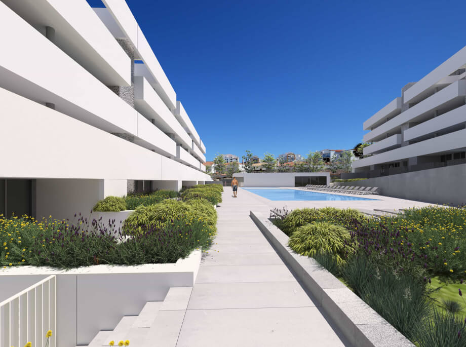 The development offers a gym, a sauna, an exterior swimming pool and parking.