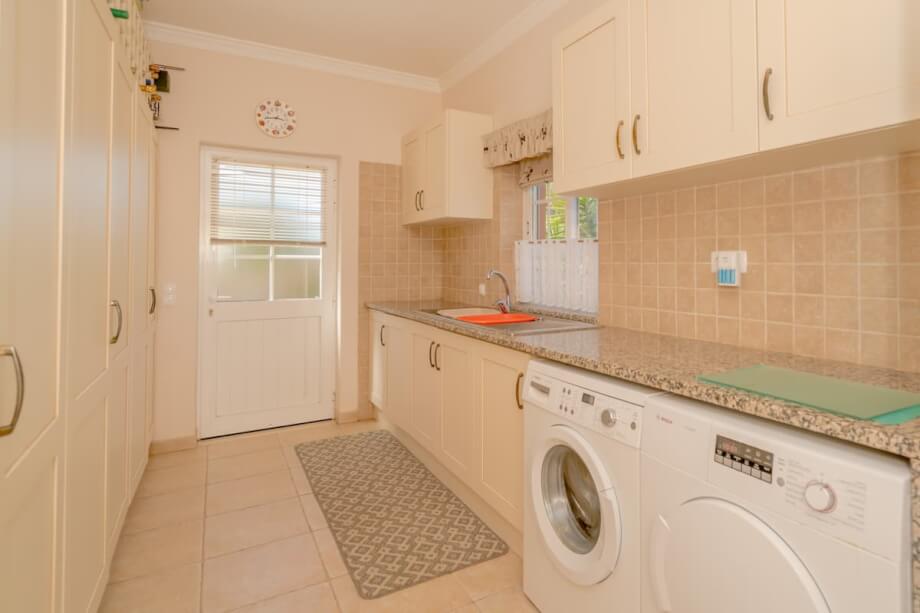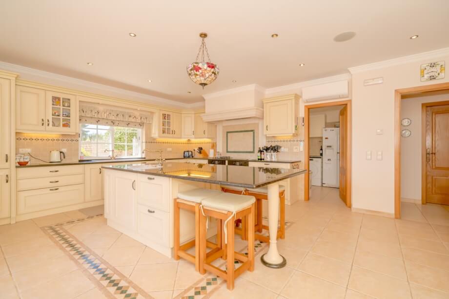 A huge kitchen island, topped with fine Brazilian granite is the natural centre-piece of the room. There is access to the almost 360 degree terrace, with this section thereof perfect for evening dining with the sun gently wilting behind the horizon as the idyllic backdrop. A fitted and ventilated BBQ complements this space. Just off the kitchen lies the spacious utilities room.