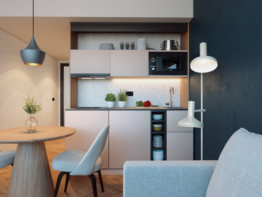 This particular development offers 72 serviced apartments, from studios to one bedrooms. All of them come fully equipped and furnished.