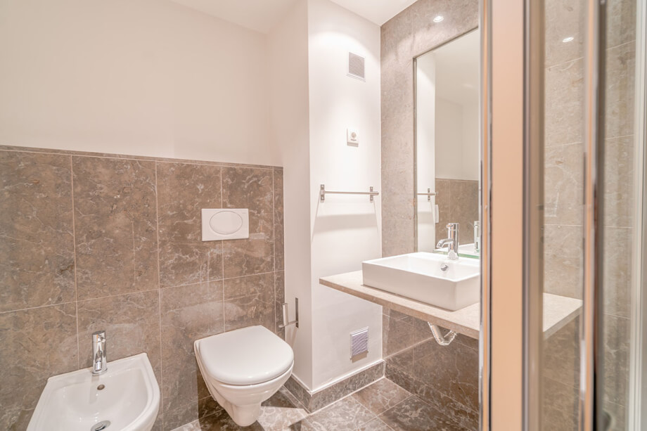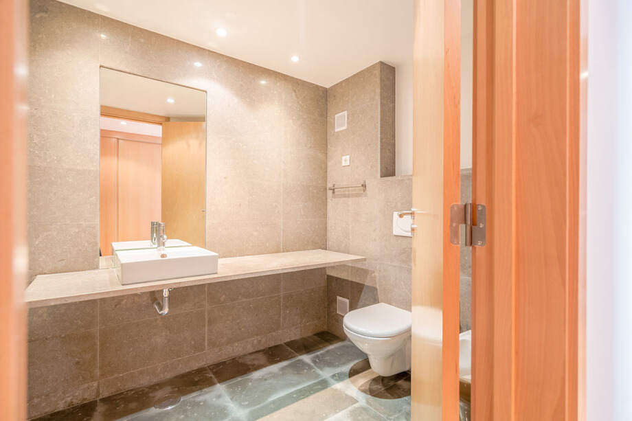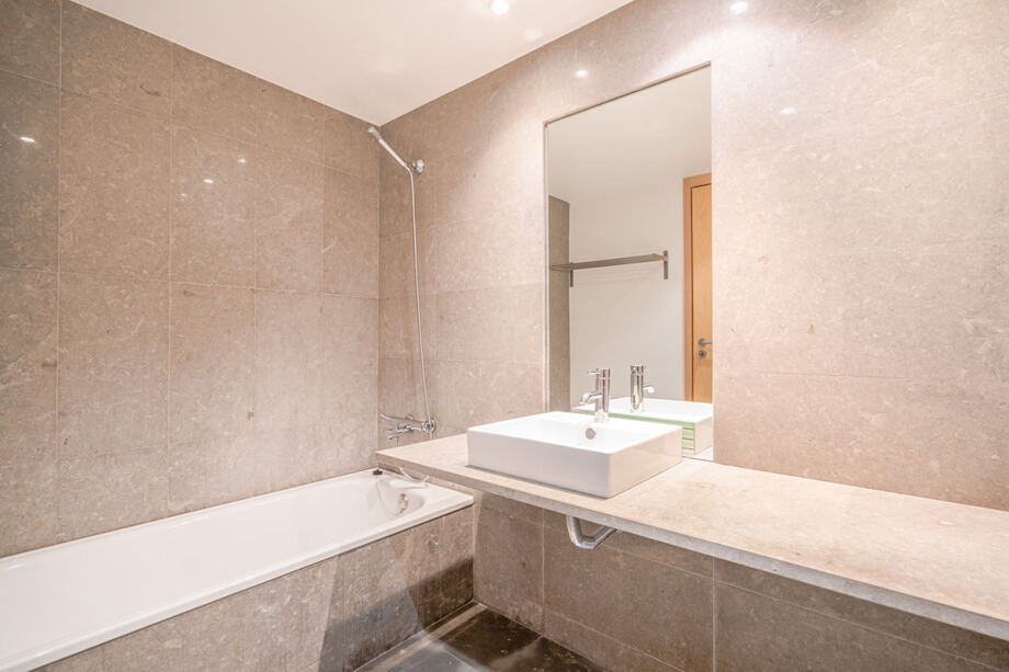 : Two modern and spacious bathrooms, one of which is an en suite that serves the master bedroom.