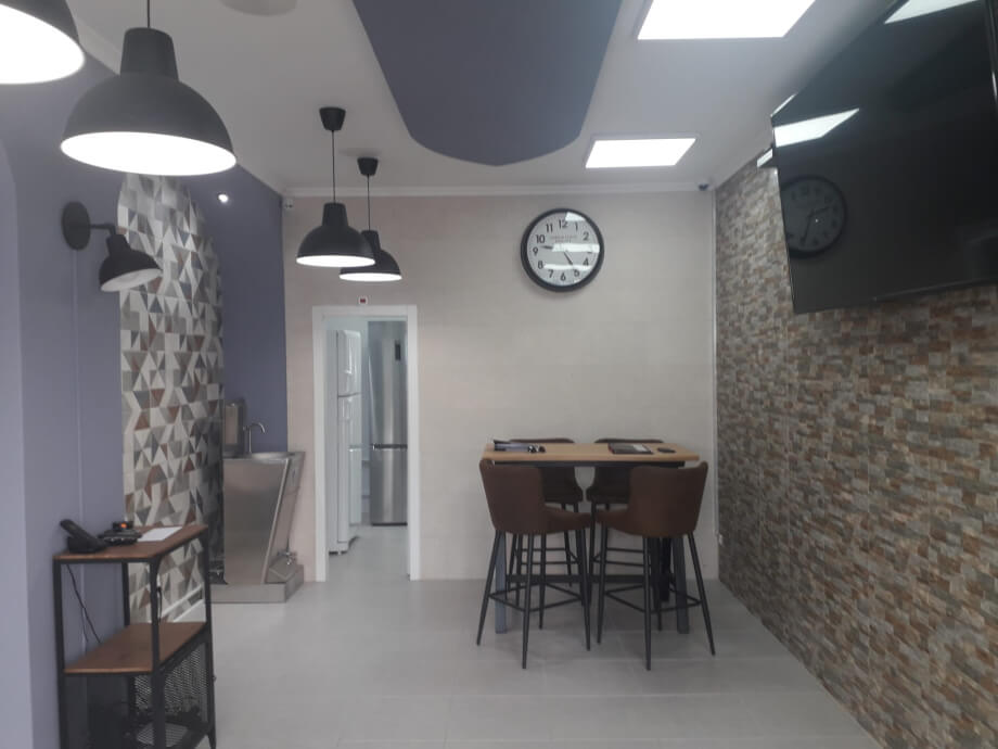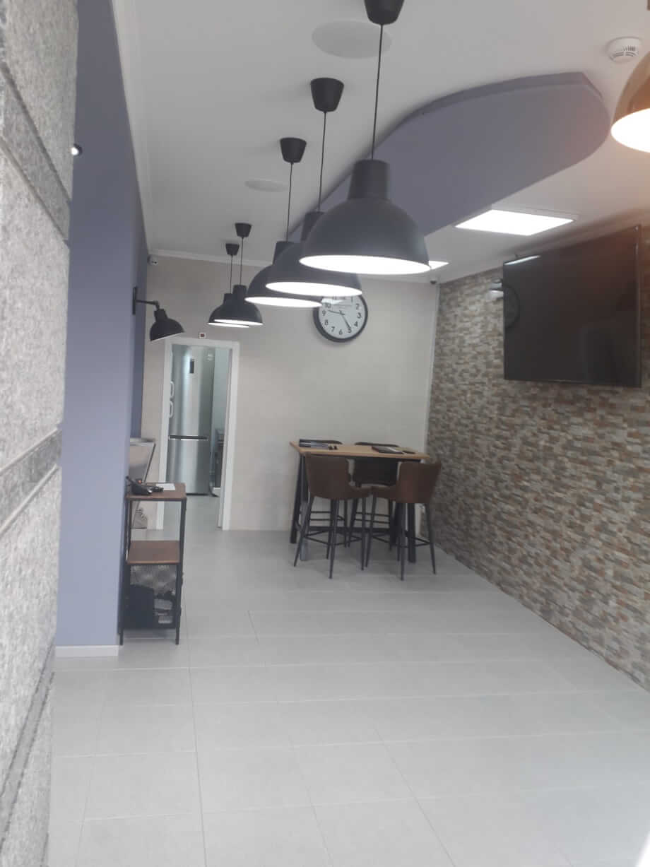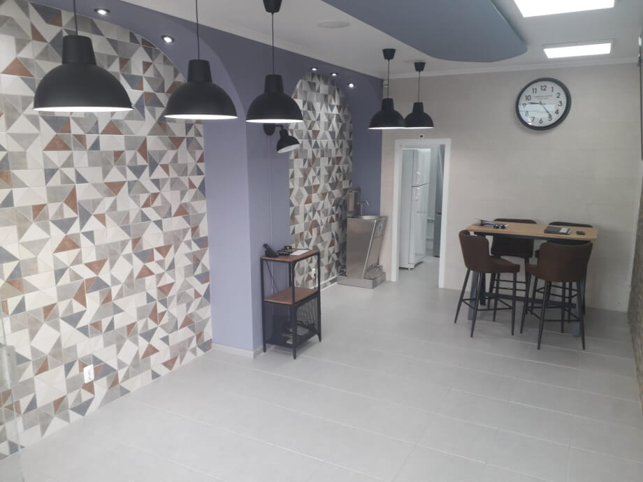 The well lit facade is floor to ceiling glass, giving the constant passing human traffic an unobstructed view of what lies within. The broad entrance door is also glass and with this transparency the natural light gives the interior a bright and airy feel throughout.