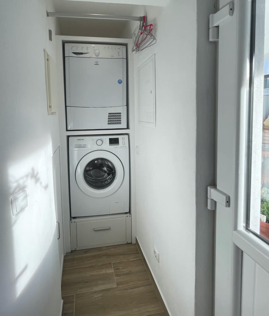 The washer and dryer are conveniently tucked away around the inlet to maximise space along with a surprisingly large storage cupboard.