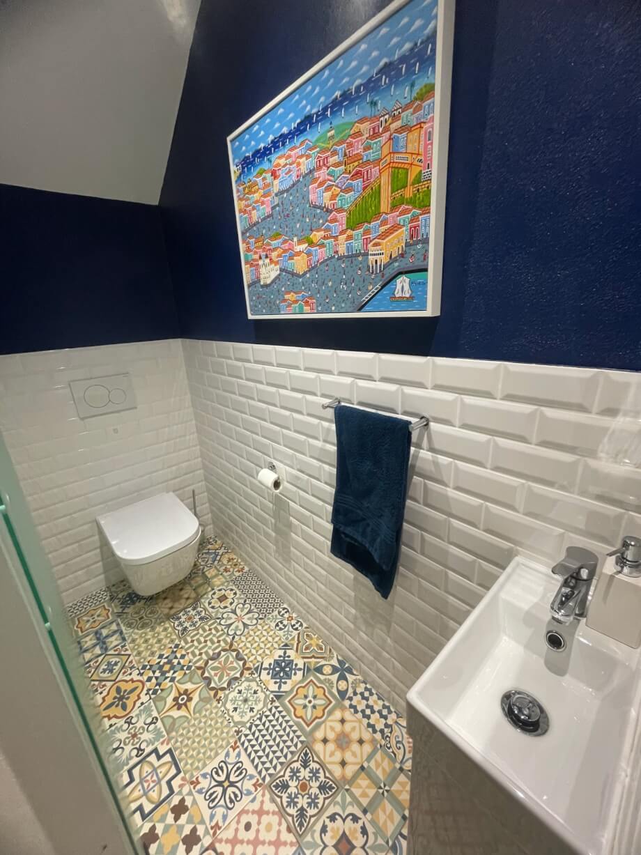 The downstairs WC is tiled in a traditional Portuguese style.