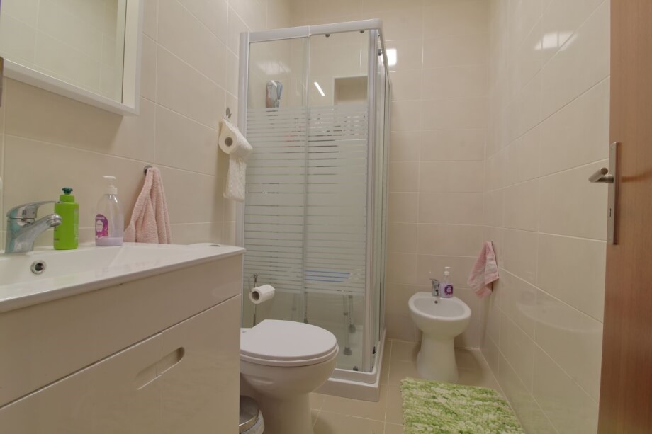 Also at ground level on the left side of the building is the private ground floor apartment, consisting of open plan living area / kitchen, 2 bedrooms and bathroom.