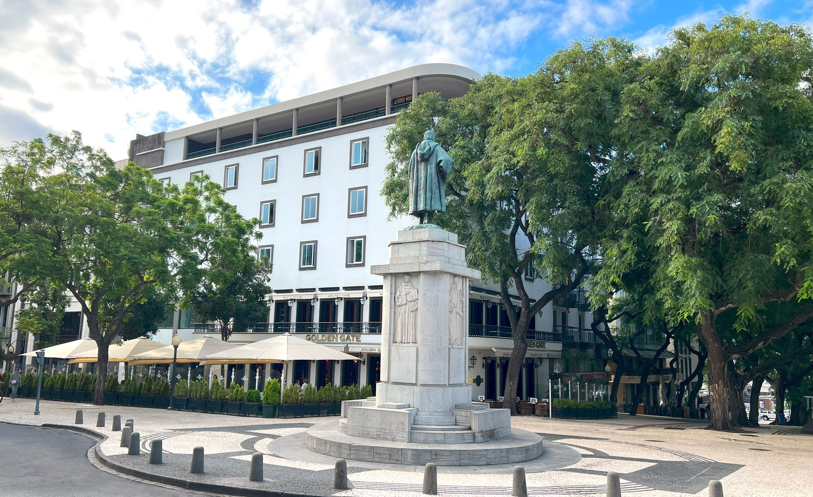 Avenida Arriaga is one of the oldest and most dynamic streets of Funchal. An important urban center, full of history, tradition and craftwork trades, which makes it an unavoidable landmark of Madeira capital's lifestyle. With narrow cobbled streets, secular houses and traditional restaurants, the entire length of this avenue is flanked by traditional Portuguese cobblestones, covered with majestic century trees. One of the center's most iconic buildings is the Golden Gate. An historical site where the society of Funchal and visitors from around the world gathered alike. Back in 1933, one of the most translated Portuguese novelists in the World, Ferreira de Castro, coined a phrase: The Corner of the World! ‘which’ gained more and more popularity with time, being a part of the town’s very heritage.
