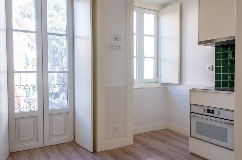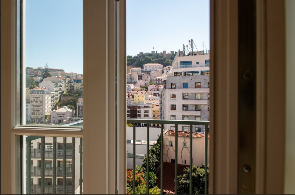 There is a rear facing balcony with tremendous views of St Jorge's castle. Ideal for a morning coffee or an evening glass of wine washed down with postcard views of historical Lisbon.