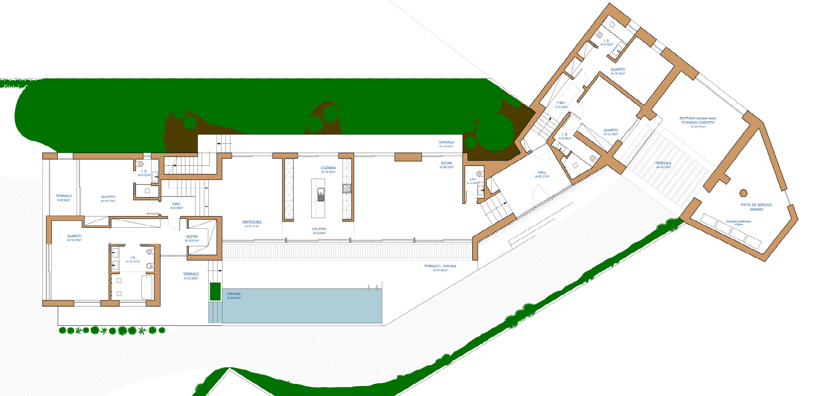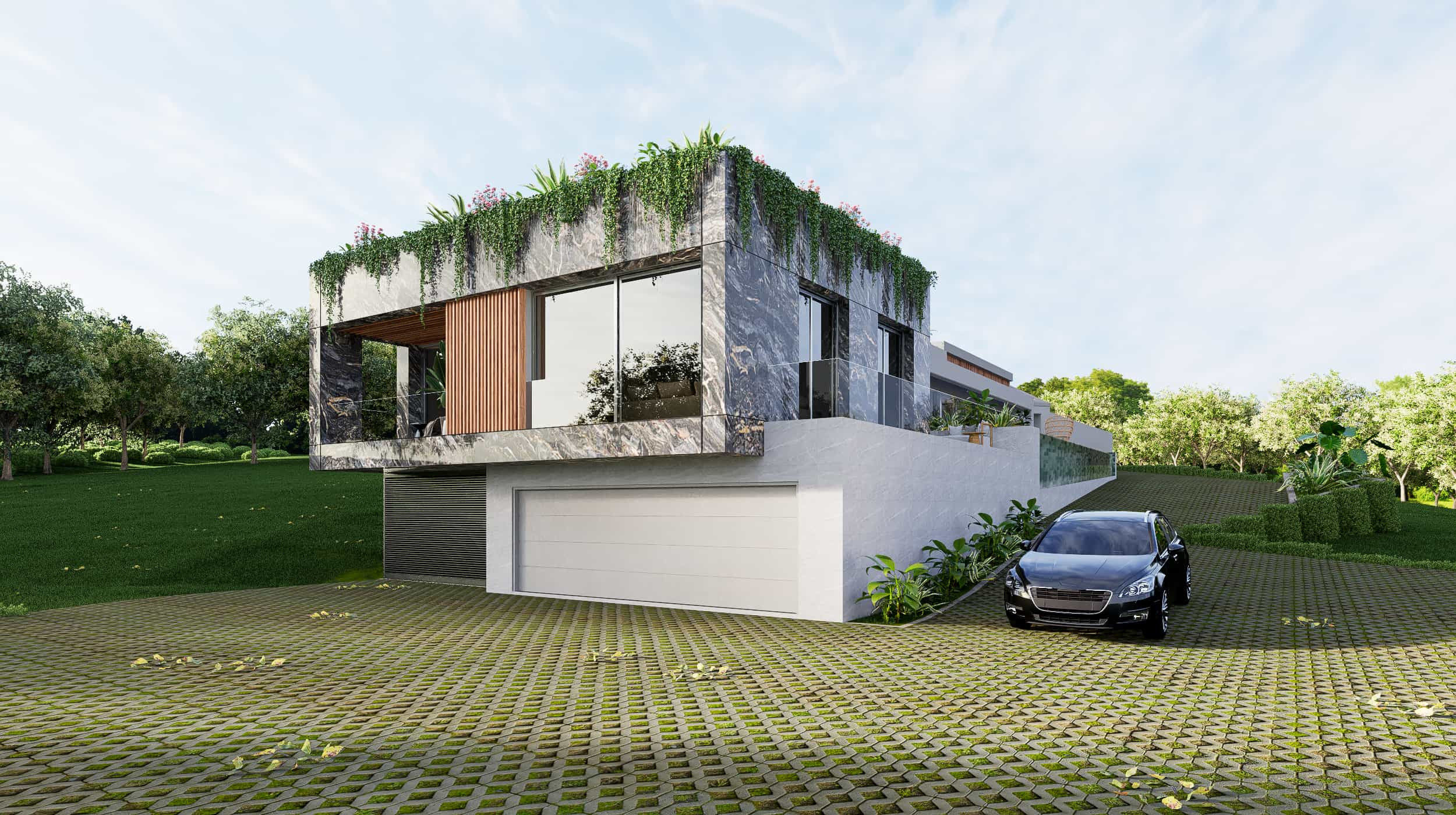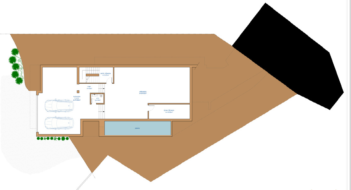 The project consists of the Villa of some 300m2 plus huge basement for garages, gym, space, studio et al.