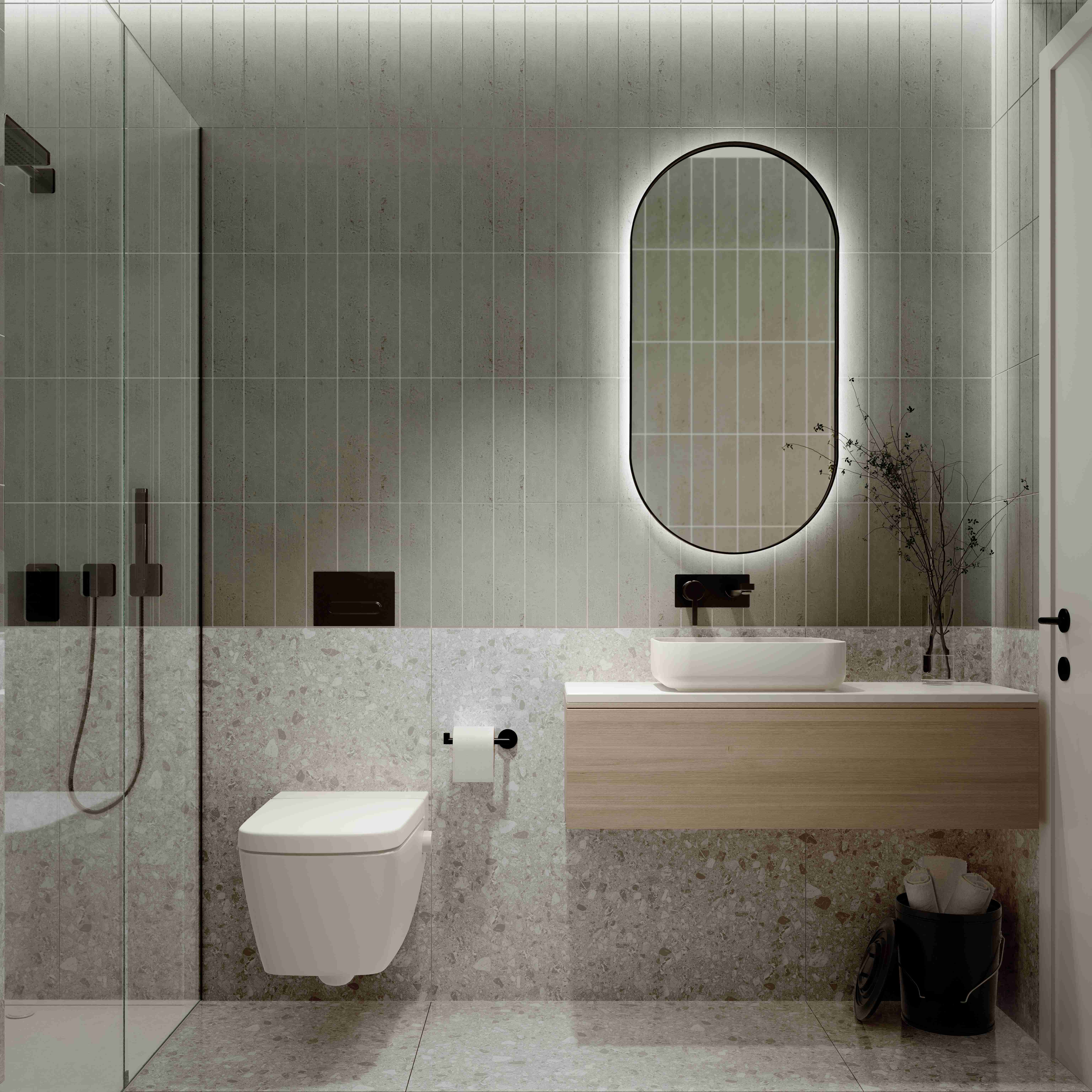 • WC tiles 30x7.5 Pamesa Origin Grace Aqua and Gresart Terrazo 90x90