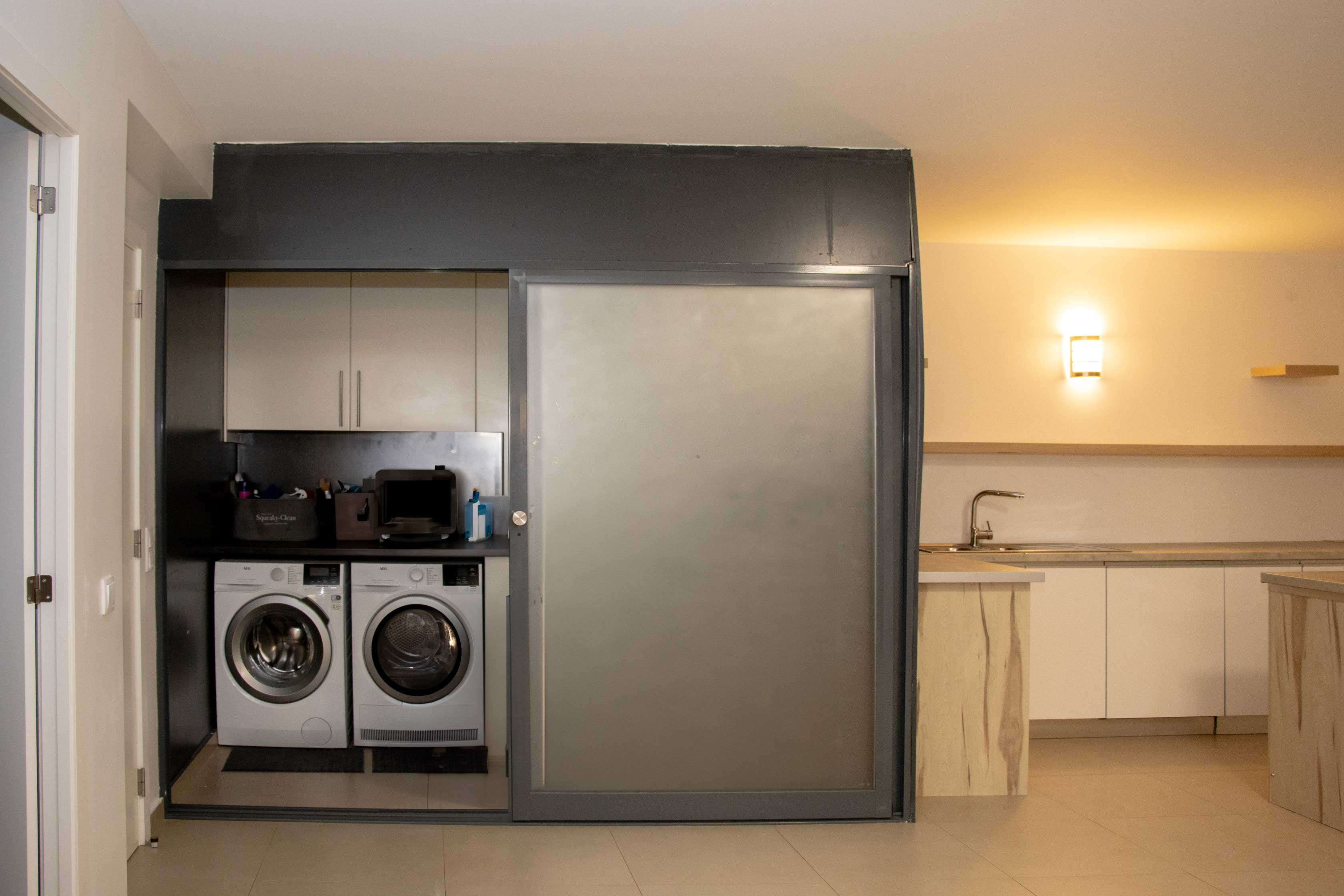 Laundry room featuring washer and dryer and lots of storage