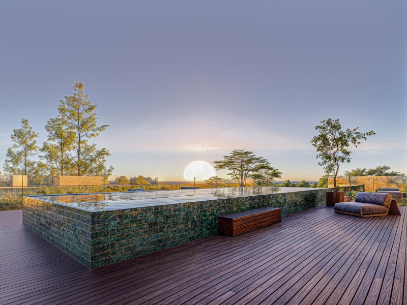 On the roof, we find a leisure area with a swimming pool where you can swim while enjoying the beautiful landscape that surrounds you.