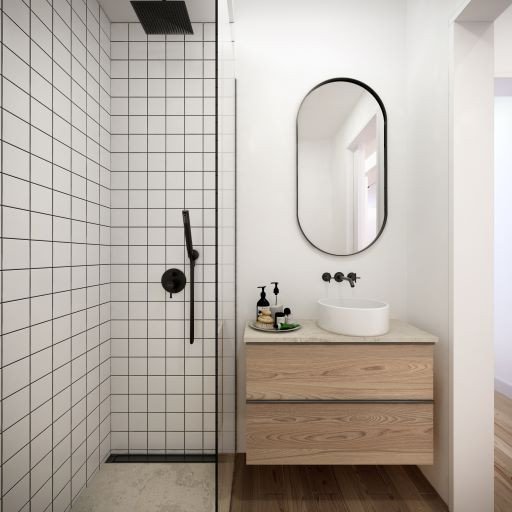 KITCHEN & WC • Fully equipped kitchen with TEKA appliances or similar • Stone kitchen countertop • Placing tiles between kitchen furniture • Built-in faucets • Fiber shower tray • Installation of glass shower screens
