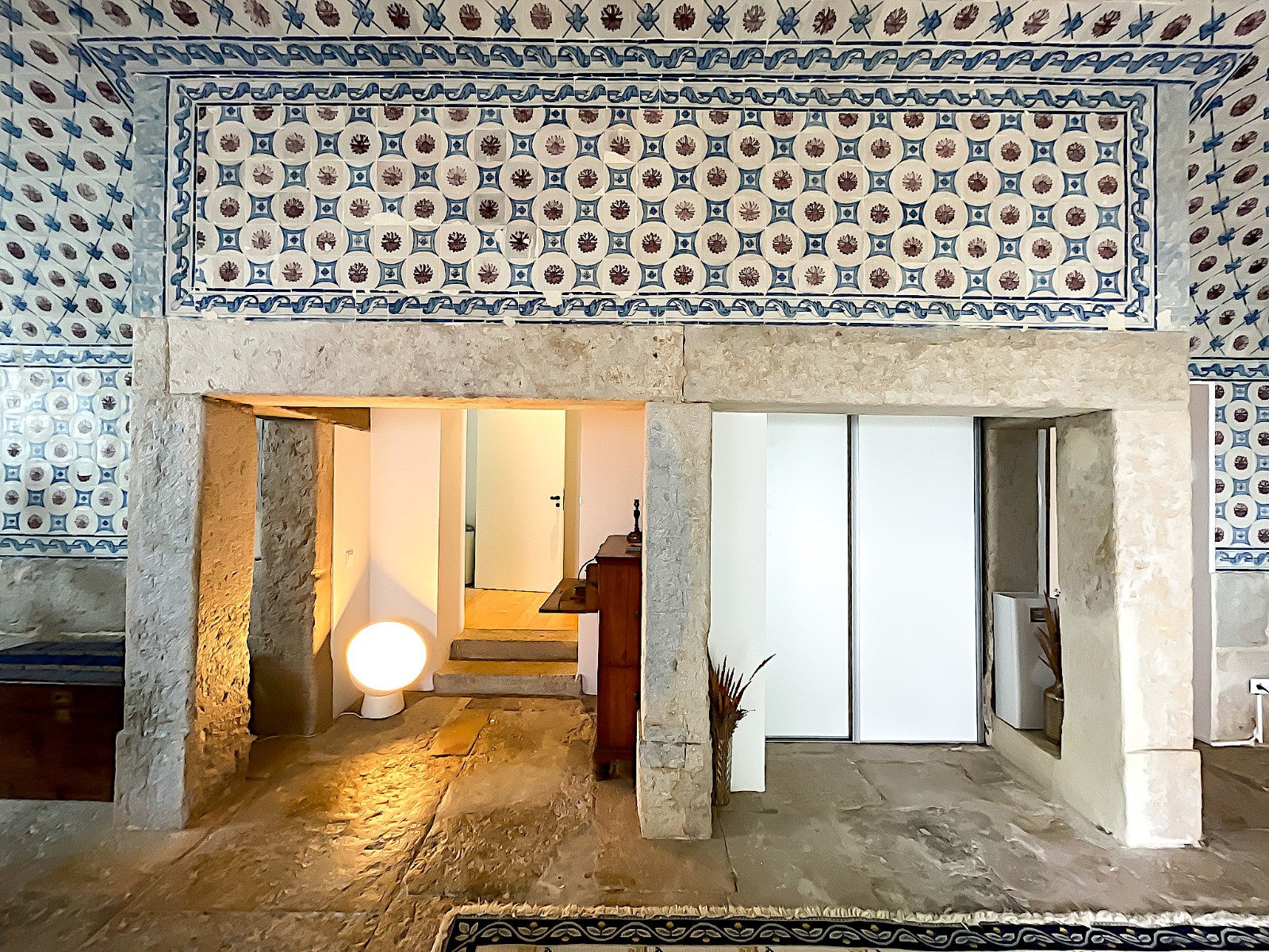 It has a 100m2 living room lined with 18th-century tiles that gives access to a south-facing private garden.