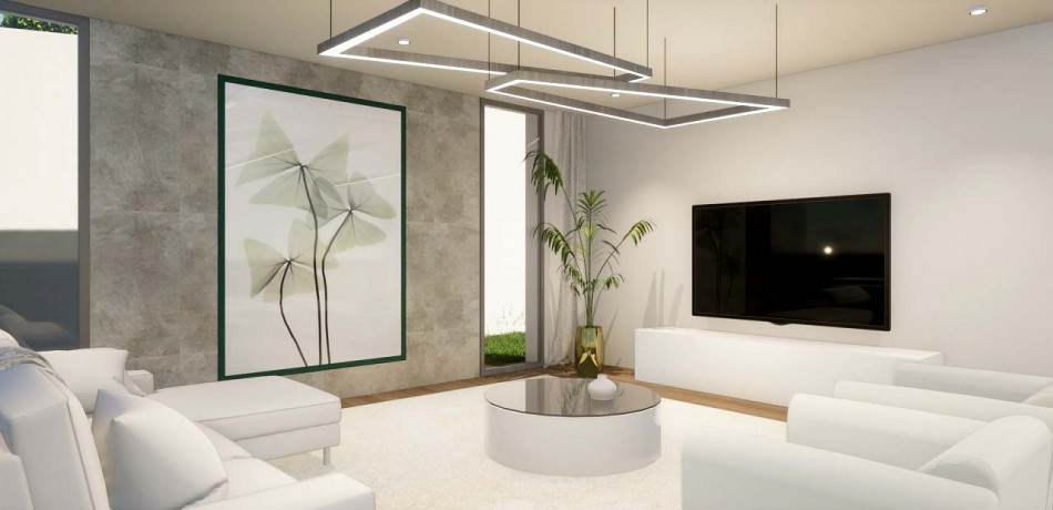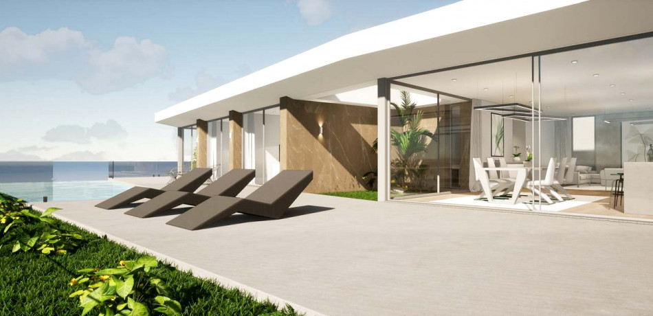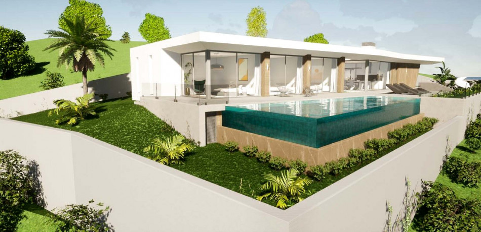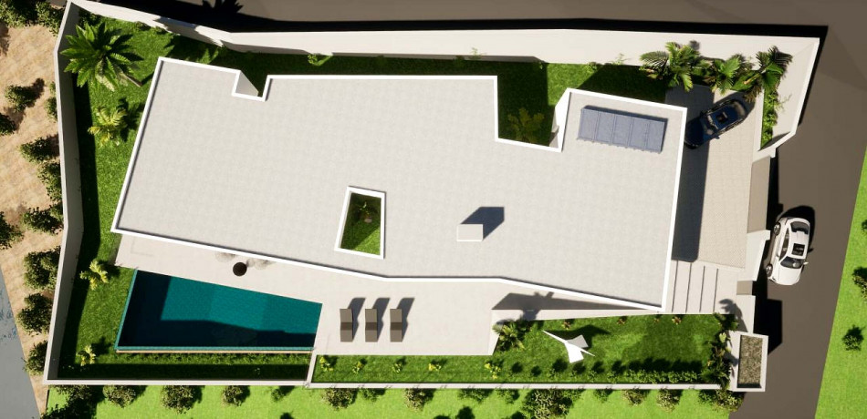 In this southwest-facing villa, an intelligent energy system with 12 photovoltaic panels with batteries to store the electricity produced will ensure that it is self-sufficient in energy. In addition, a heat pump will be installed to heat the pool. The heating of the sanitary waters is with a heat pump of 300Liters.