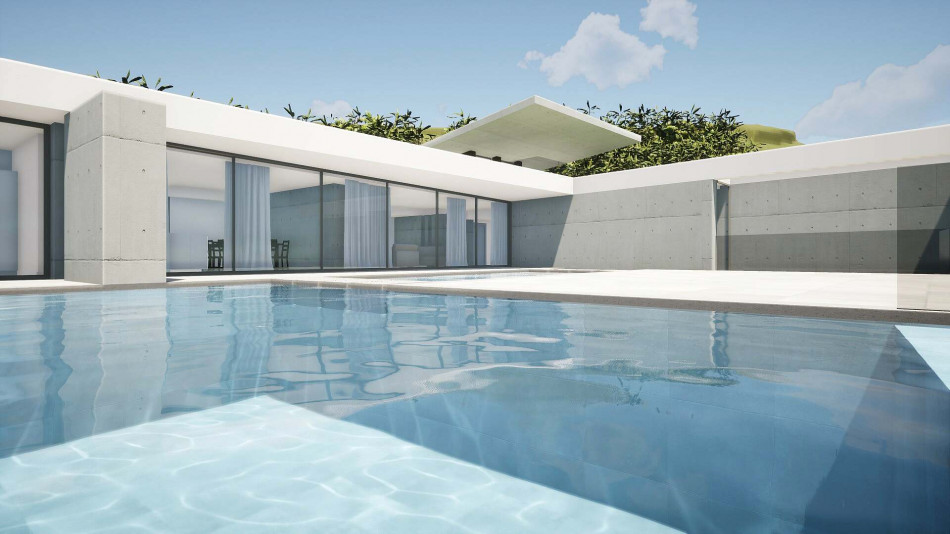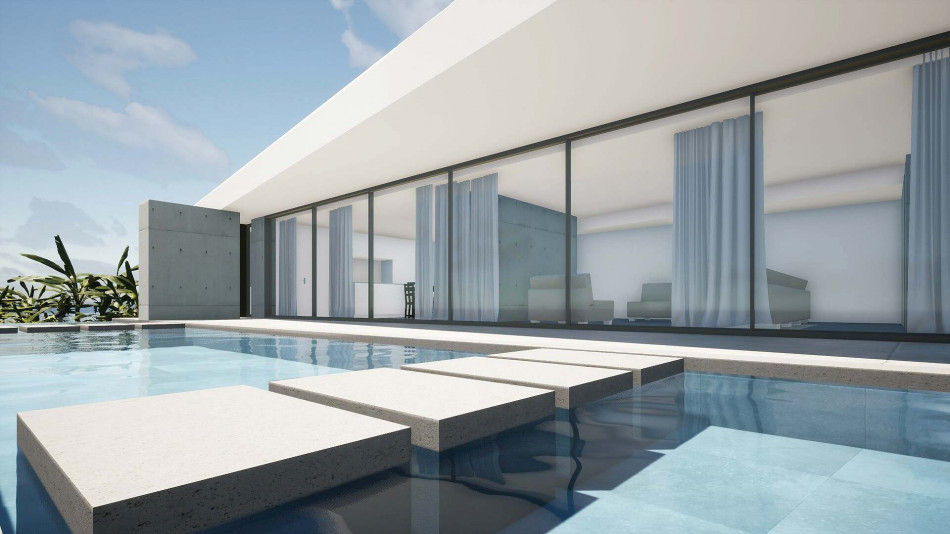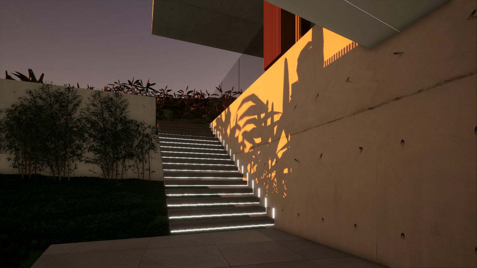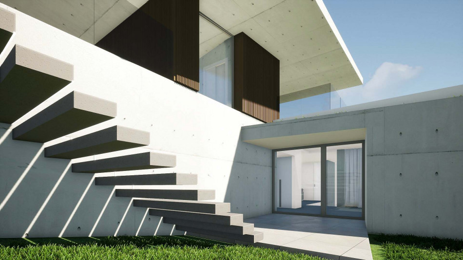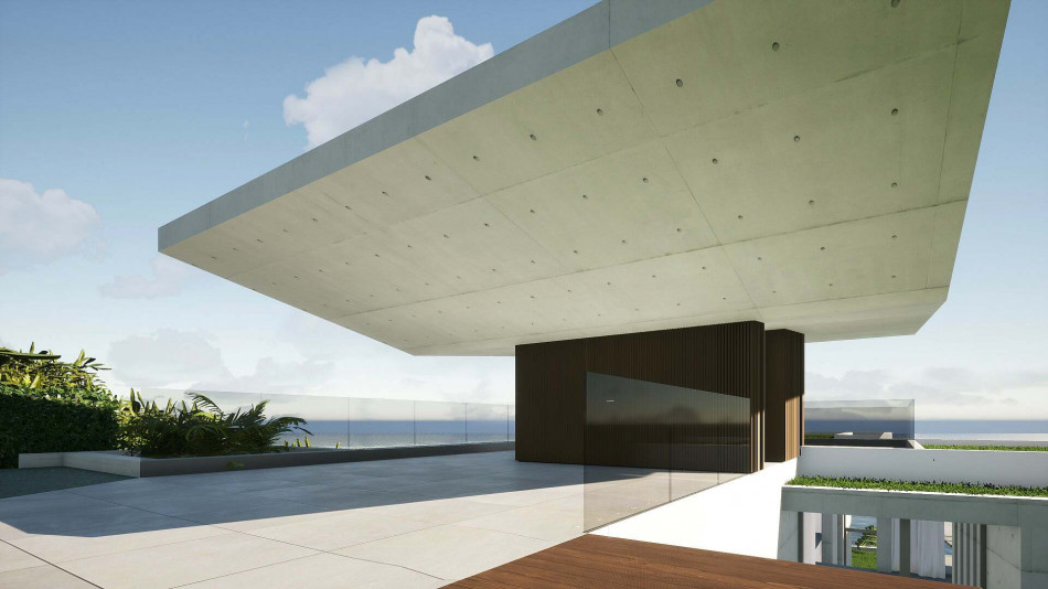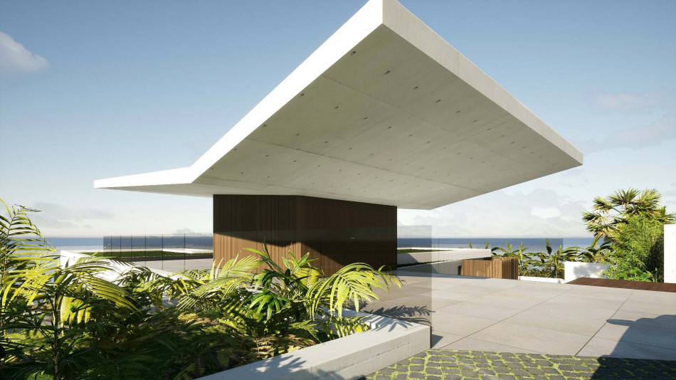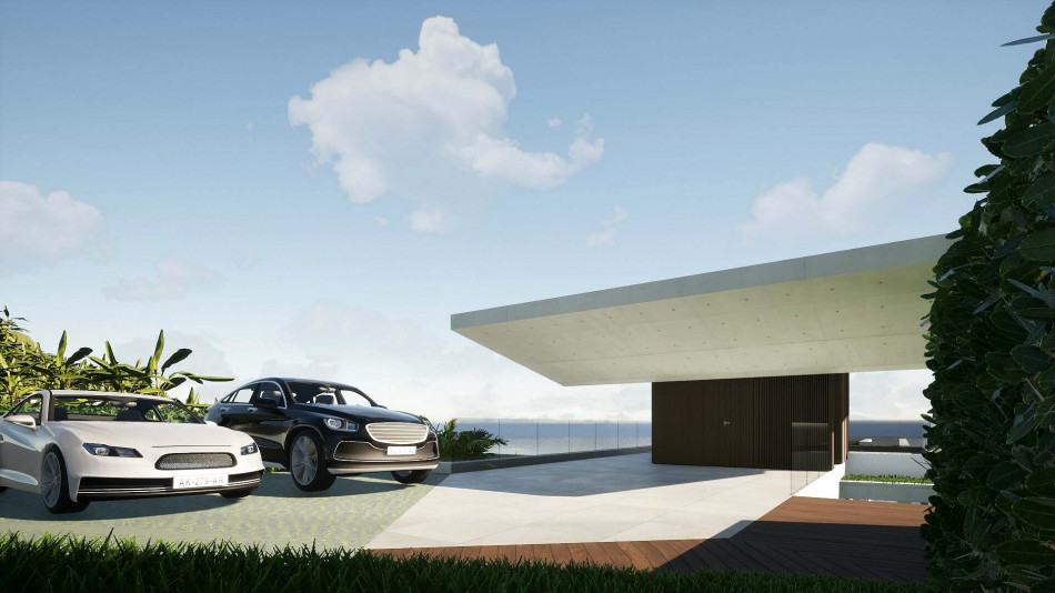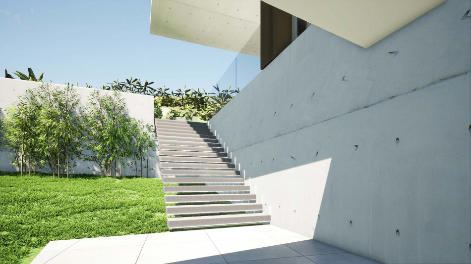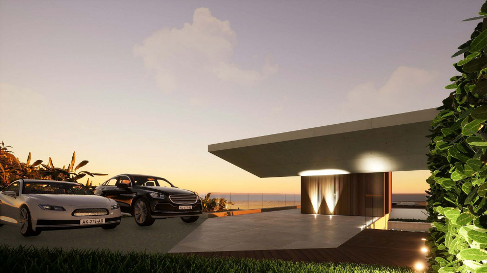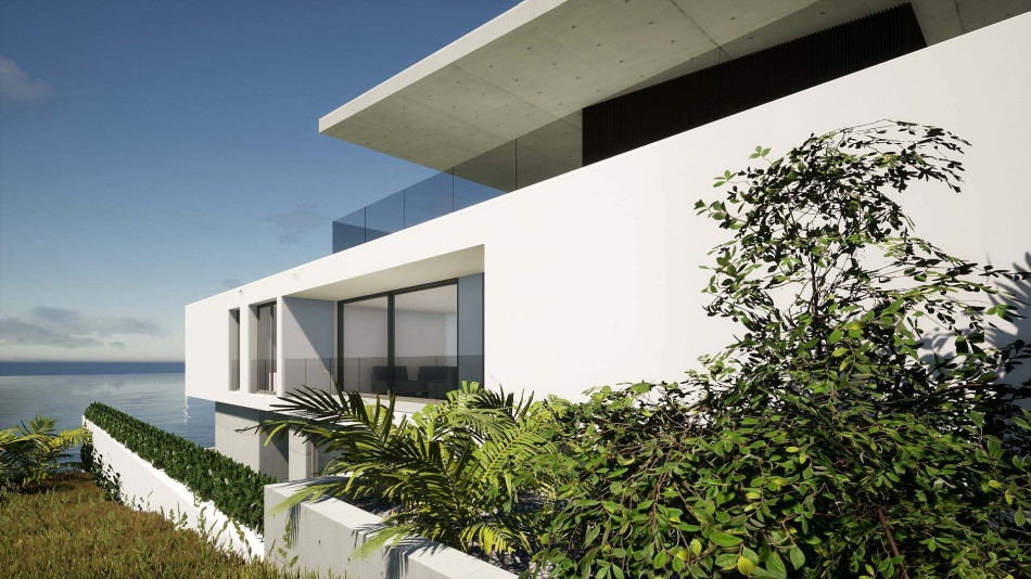 For the outdoor area, a green hedge has been planned all around the property, helping to create an integration with the surrounding landscape, while providing more privacy. Around the house will be a garden with trees/ornamental plants and lawns. Also noteworthy is the staircase leading directly to the beach.
