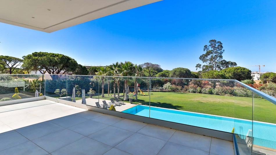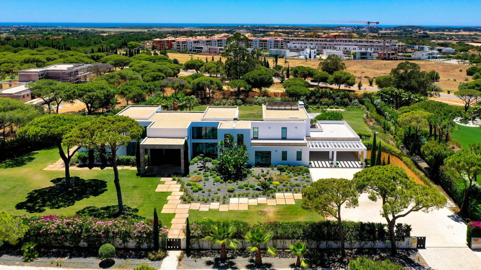 Discover unparalleled luxury in the esteemed Pinhal Velho area of Vilamoura with this exquisite villa, a 2020 masterpiece from SMS Arquitectos. Nestled on a sprawling 6,859 m2 plot, this 956.5 m2 property boasts 8 elegant bedrooms and 10 lavish bathrooms. The villa's architectural brilliance is matched by its sophisticated interiors, including a double-height lounge, a cosy TV room with a gas fireplace, and a grand dining area seating 20. Seamless outdoor integration highlights a stunning adult and children's swimming pool, a BBQ-equipped covered terrace, and a delightful children's playground amidst picturesque gardens.