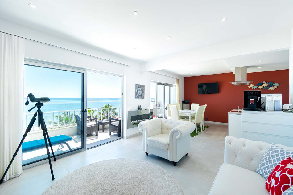 Experience the epitome of coastal luxury in this captivating 2 bedroom/2 bathroom oceanfront apartment in picturesque Quarteira. Perched on the coveted third floor, it offers panoramic views of the majestic…