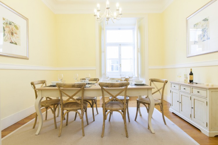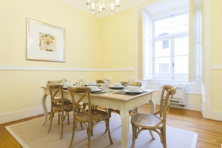 This beautiful refurbished large 3 bedroom apartment is located in the heart of baixa downtown Lisbon, it’s on the second floor of the building . This modern and contemporary style furnished Lisbon apartment with wooden floors, high ceilings and large aspect windows. Is equipped with Air-conditioned throughout, perfect location for short term renting in this highly sought after location, 5 minutes walk from the River Tejo. There are several restaurants, cafés, mini markets and pharmacies at very short walking distance. Praça do Comercial is 5 mins walk, the famous tram 28 stop is also very near by.