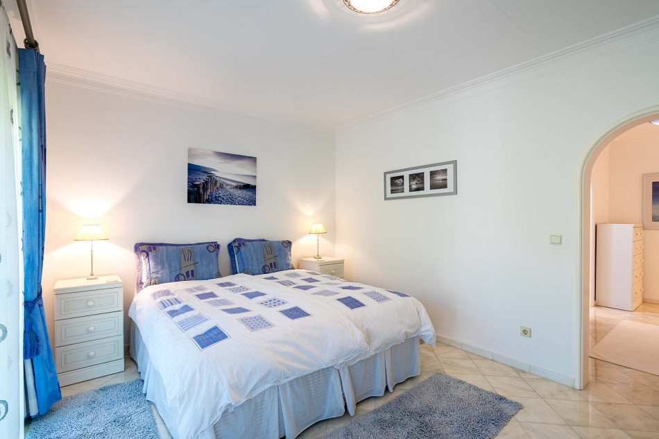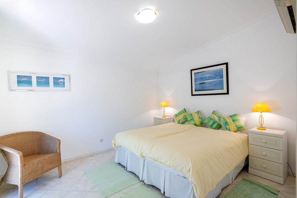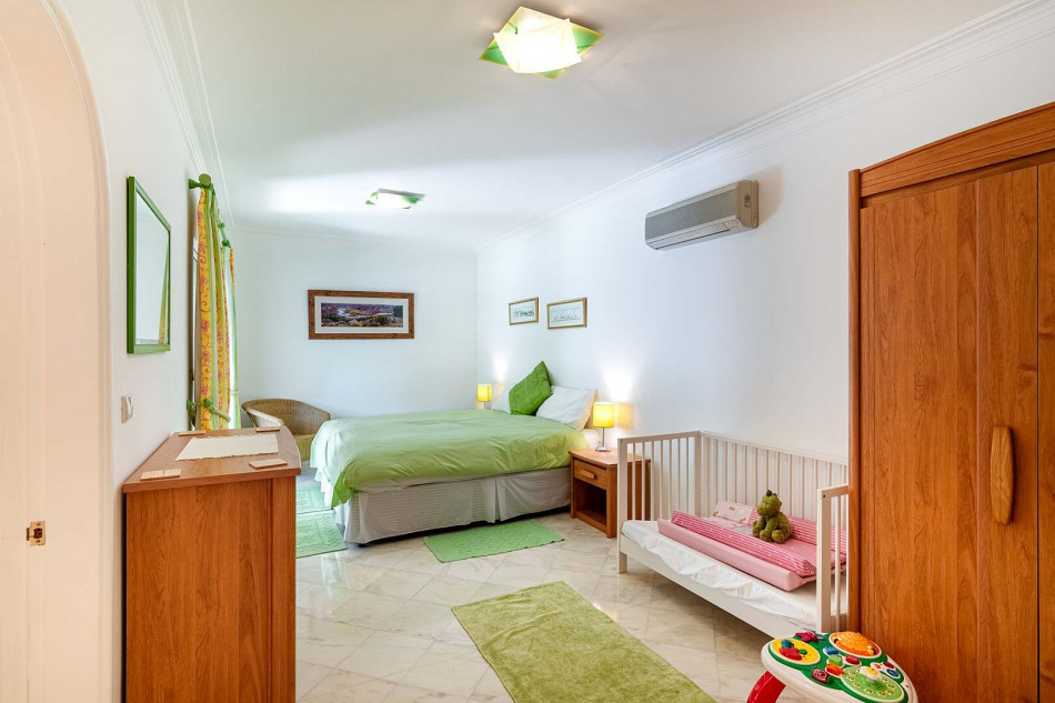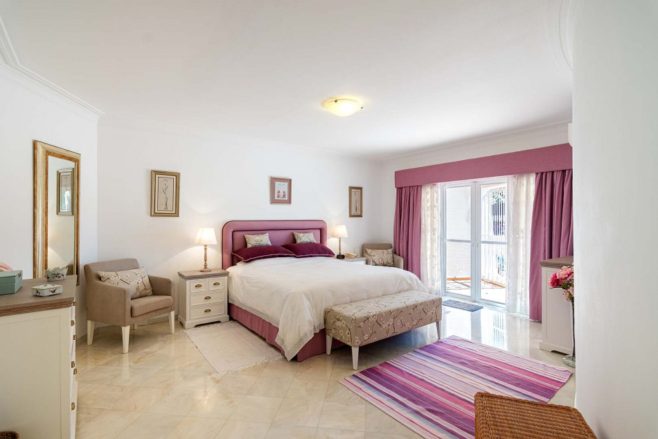 Welcome to this exquisite property nestled in the sought-after area of Vilamoura, where a serene cul-de-sac leads you to a haven of comfort and elegance. Perfectly positioned for easy access to the vibrant marina, this enchanting villa offers a wealth of amenities, including stunning golf course views, a magnificent garden with a large pool, a captivating pond, and a soothing waterfall cascading into the pond.