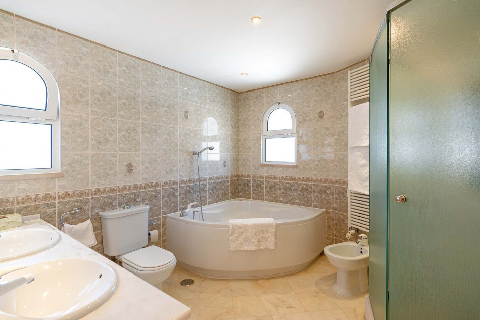 Venturing to the upper level, you'll discover the master bedroom, a private sanctuary complete with a wrap-around terrace overlooking the picturesque golf course. This delightful retreat also boasts a walk-in wardrobe and a lavish en-suite, where you can indulge in relaxation and tranquility. Adjacent to the master bedroom is another en-suite bedroom, ideal for versatility and comfort. An inviting cosy sitting area with a circle brick ceiling creates an intimate space for quiet moments of reflection.