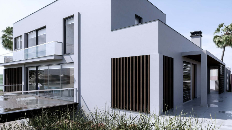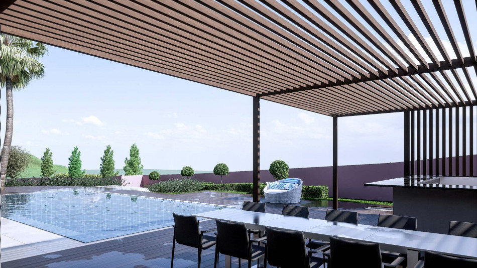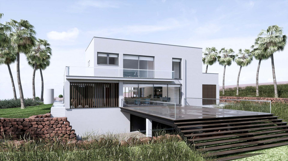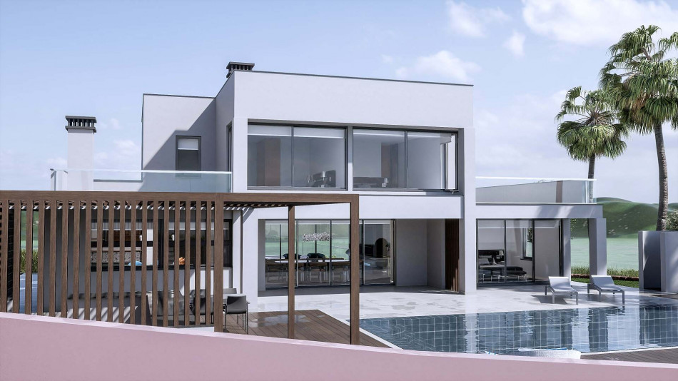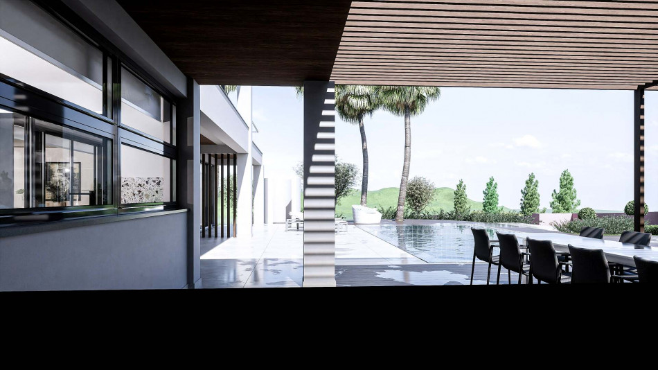 Contemporary-style villa in an exclusive location. Ground level consisting of a large open-plan living dining area full of light with glass doors opening onto the sunny south-facing pool terrace. Luxury…