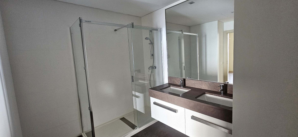 Huge T2 apartment, with 2 suites with huge wardrobes and w/cs, huge dinning roomwith social w/c, Kitchen, big balcony, with an incredible sea view, and sunset. Real Conduminium Club, security…