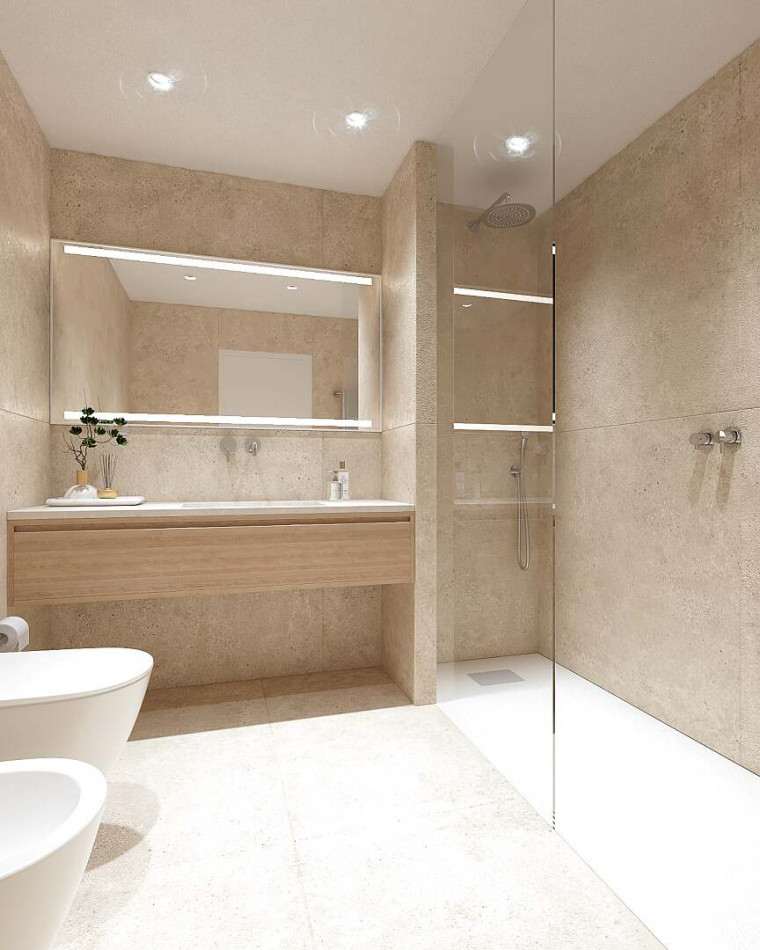 The elegant bathrooms feature modern fixtures, premium finishes, and wooden accents, creating a spa-like atmosphere for your personal retreat. Every detail is crafted to offer a peaceful, luxurious experience.