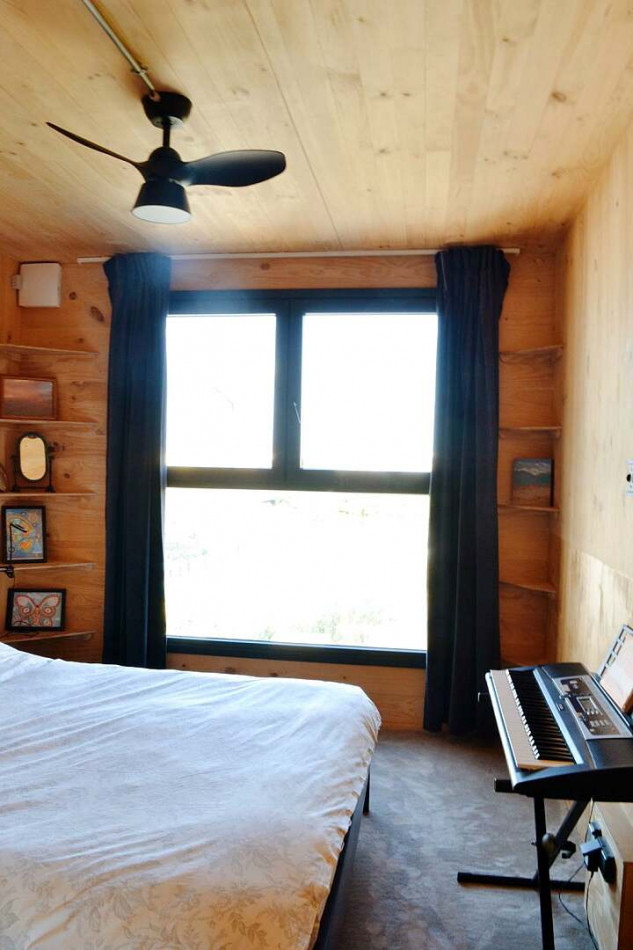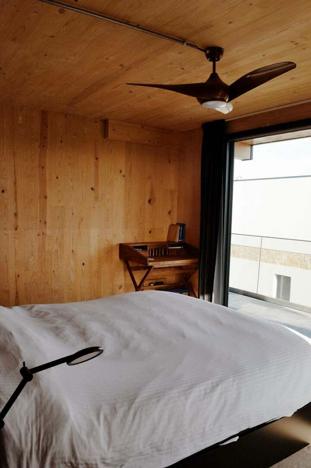 Soft carpeting and warm timber tones give the upper floor a quieter, more intimate feel — ideal for rest and retreat in a family home close to the ocean.