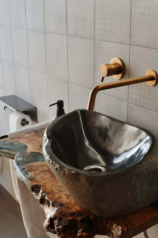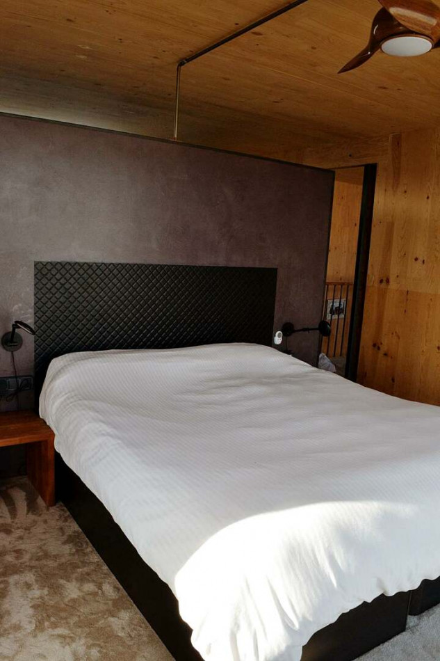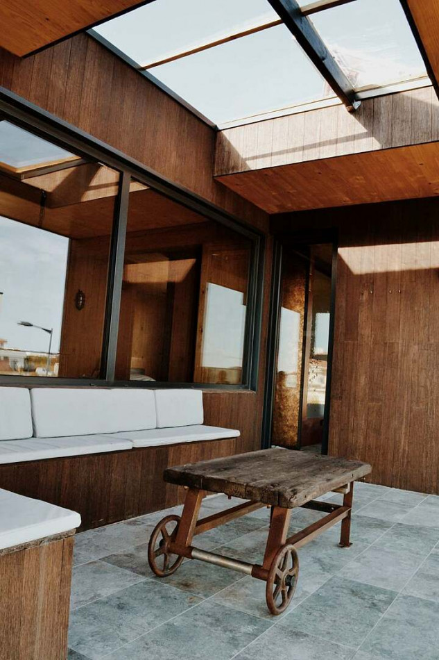 Inside, the main living space is open, bright and rich in texture. Timber surfaces, soft furnishings and expansive glazing replace sterile minimalism, creating warmth and depth. The living and dining areas flow directly onto the terrace and pool, allowing daily life to move effortlessly from kitchen to water in a straight, intuitive line.