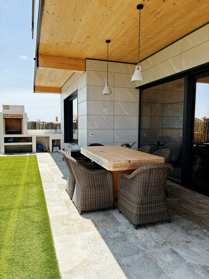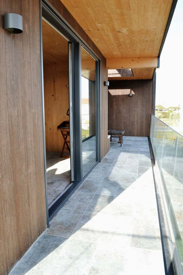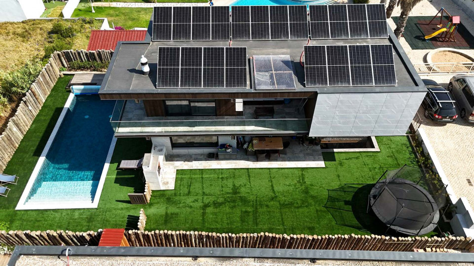 This modern Sagres villa is a home designed to be lived in, not merely admired. From the street, its CLT structure and ceramic cladding create a crisp architectural presence, softened by natural timber detailing and mature greenery. The façade and garden immediately set the tone: contemporary, calm and purposeful, with sustainability at its core.