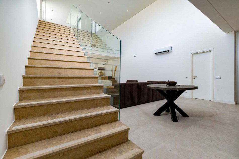 Spanning 5.35 hectares, the land is rich with natural features and agricultural value. The property includes mature carob trees, almond trees, and olive trees, set within gently undulating terrain. The landscape invites sustainable living, organic cultivation, equestrian use, or simply an extraordinary canvas for a private estate surrounded by nature and silence.