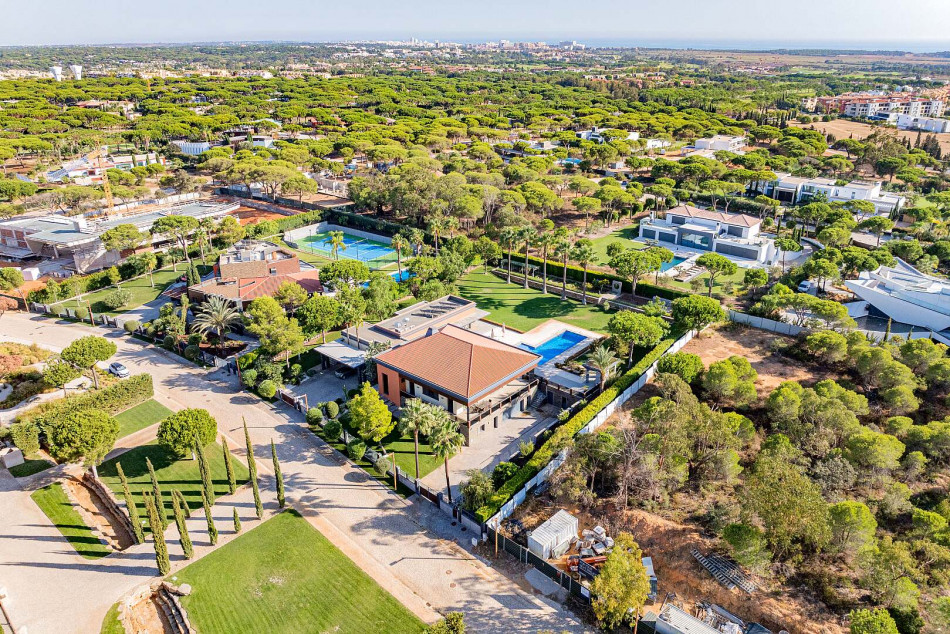 Set on a magnificent 4,022-square-metre plot, the property is surrounded by lush Mediterranean landscaping, ensuring total privacy while remaining moments from Vilamoura’s celebrated marina, golf courses, and golden Algarve beaches.