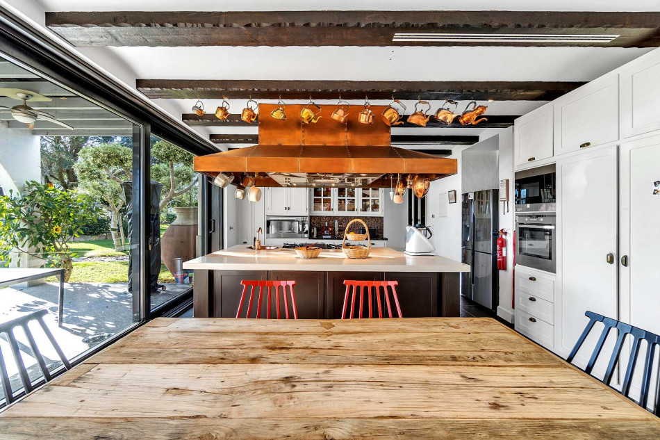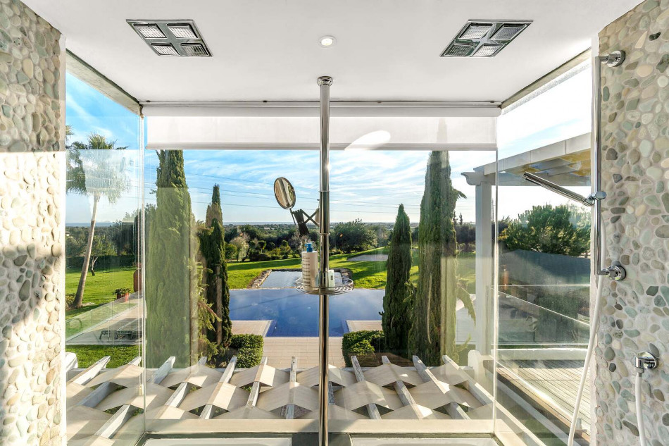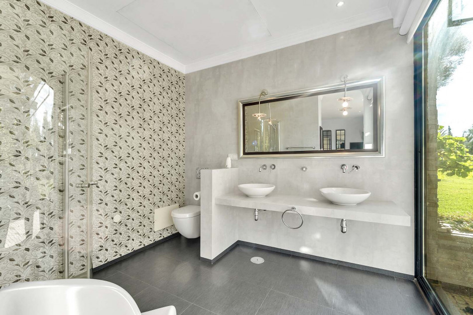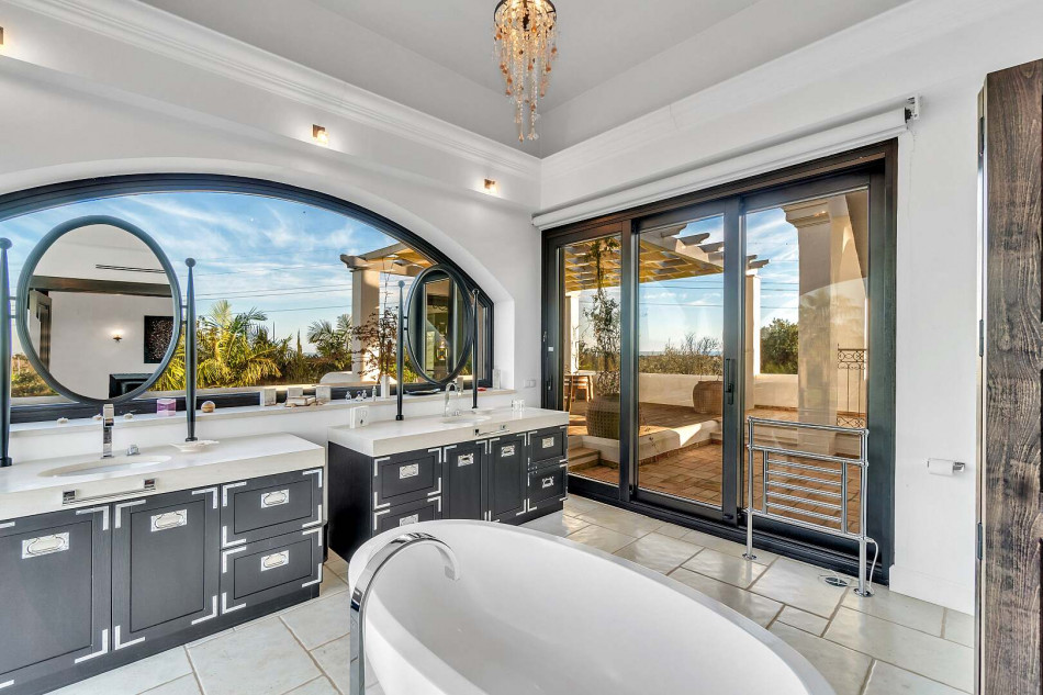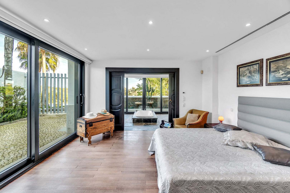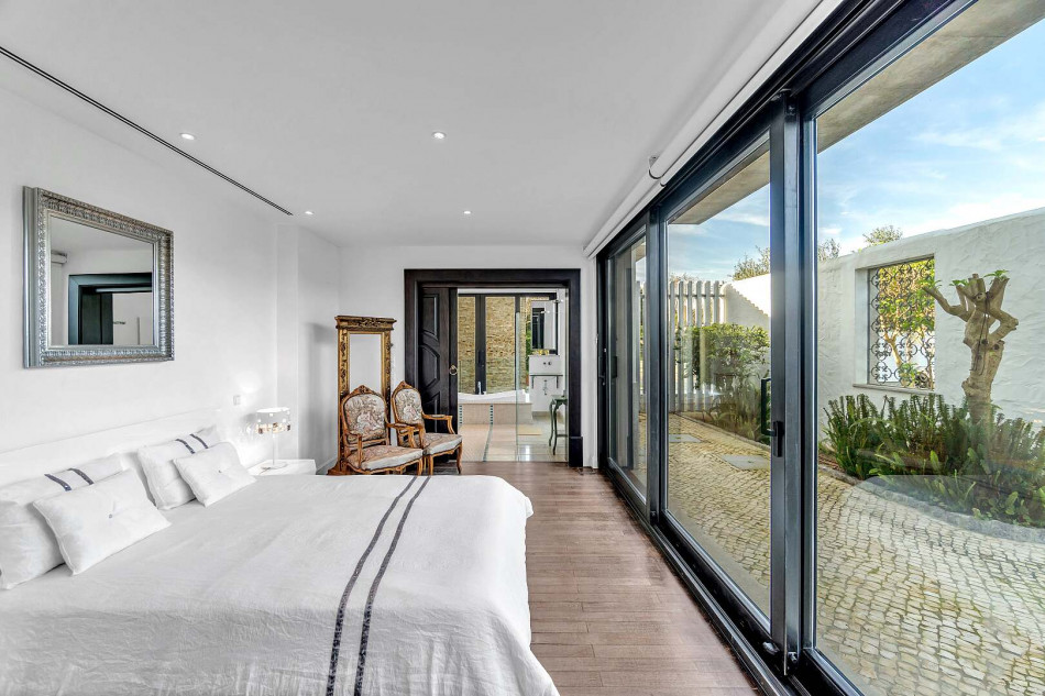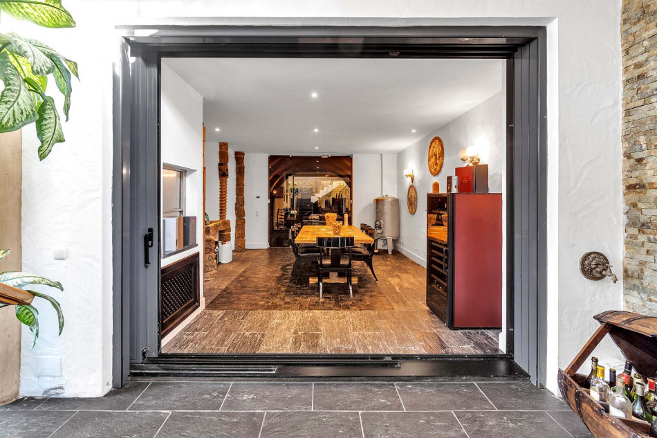Several fireplaces are displayed throughout this property, adding warmth, design and texture to the villa's various rooms. Large windows in all south-facing rooms provide access to the outside terrace, gardens and pool, adding light to these large spaces.