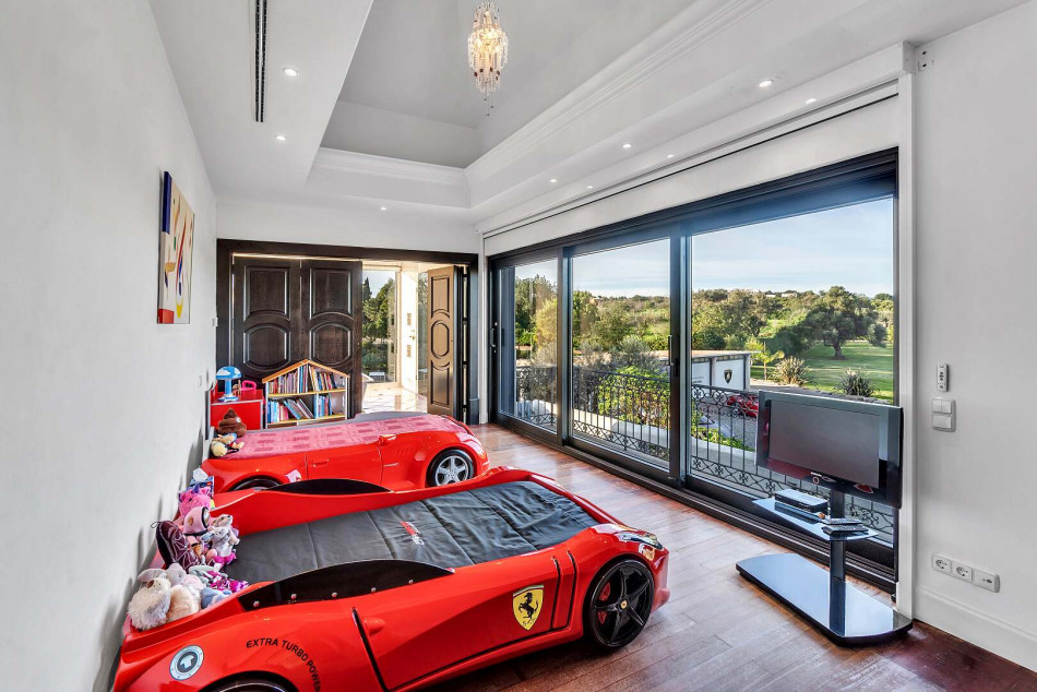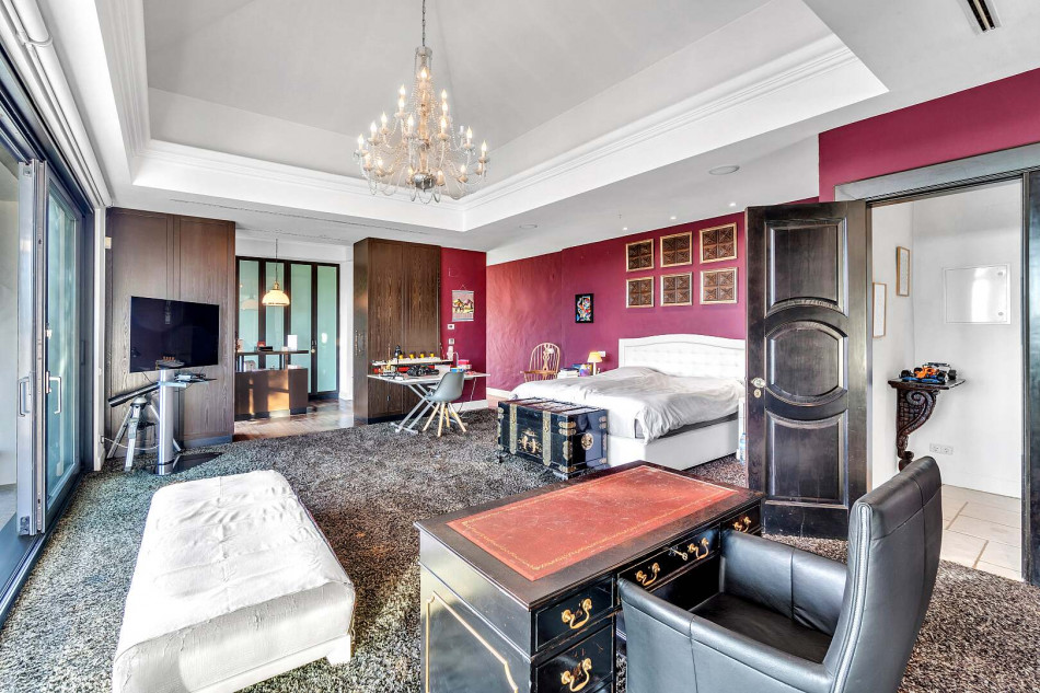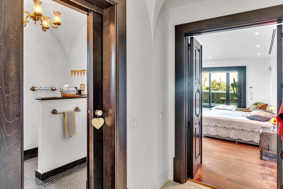 On the first floor, there are 3 bedrooms, all en-suite, plus an office. The upper-level features handcrafted brick ceilings in the hallway and high ceilings in all bedrooms. All bedrooms have large en-suite bathrooms, and balconies and the master bedroom also has a fireplace.