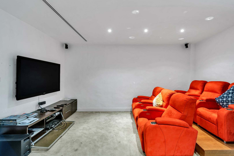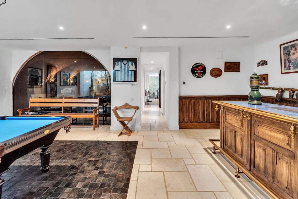 At the basement level, there is the cellar, gym, changing room with showers, laundry, games room, cinema room and storage.
