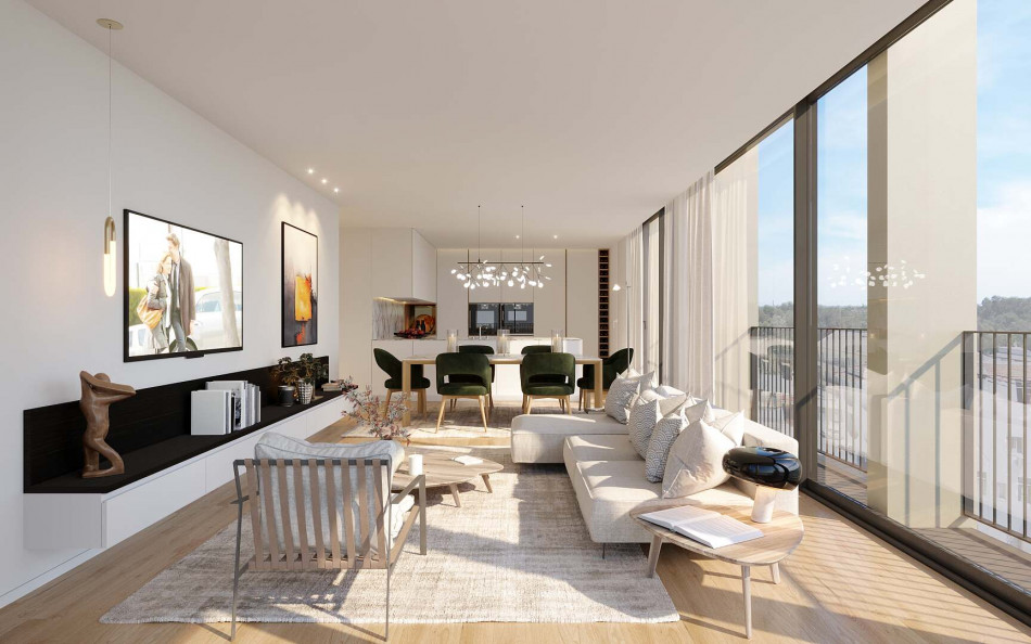 Experience the modern feel of open-plan living in the spacious apartments, where kitchen, living, and dining seamlessly intertwine. Abundant light from large windows envelops each corner, fostering a sense of peace, comfort, and calm.