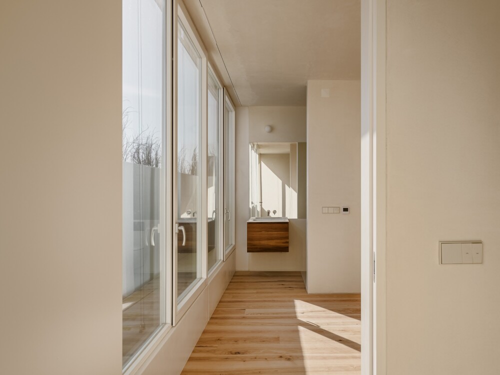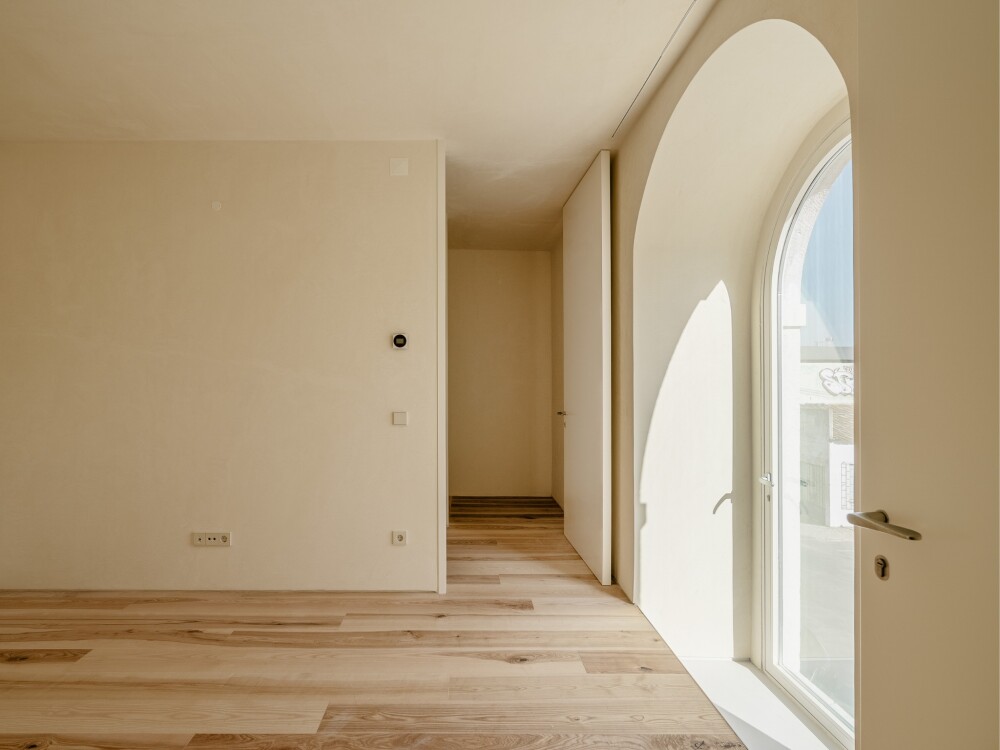 Its interiors show a plain chromatic palette, waiting to be coloured by the life of their inhabitants.