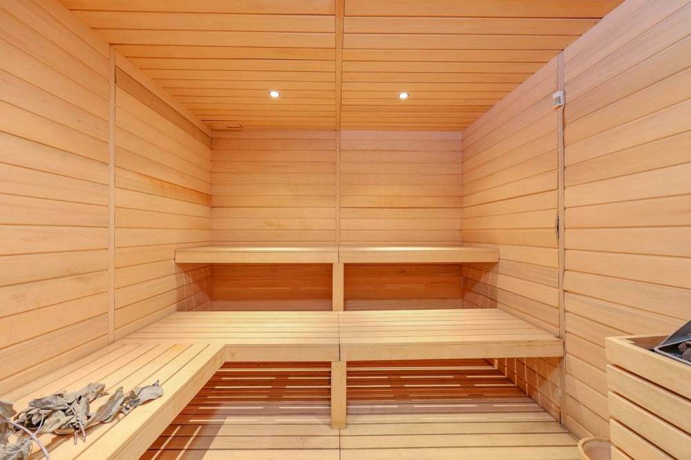 The next room on the ground floor is a large multifunctional space with a Finnish sauna made of larch wood, a relaxation area with large sofas, and pre-installation for a bar counter or kitchenette. Here you can also install gym equipment, a table for ping-pong or billiards, or create a lounge area to watch TV.