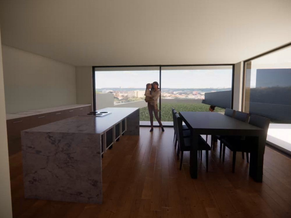 On the middle floor above (floor 0) we have the first bedroom with wardrobe that can be transformed into office or other destination, immediately above climbing another half floor (floor 0.5) we have 2 suites, the master suite with closet and balcony of 9m2 with unobstructed views of Porto, full bathroom with shower and landing bath. Going up another half floor (1st floor) we have 1 more suite and finally on the 1.5th floor we have the 4th suite, both with wardrobes and bathroom with showers.