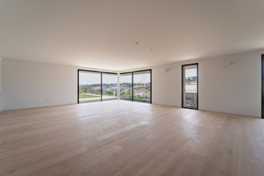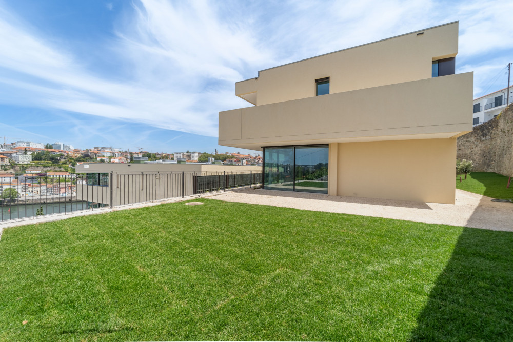 This villa is part of a new private condominium whose work has just been completed in Vila Nova de Gaia, on the south bank of the Douro River, and stands out for its spacious areas.