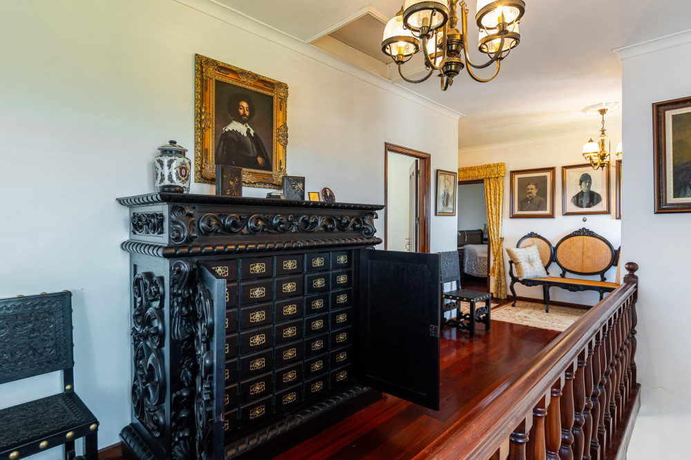 It is also characterised by its generous areas, impeccable structure, some unique particularities, such as the imposing stairs, solid wood, tiles, a fountain, an altar and the nobility of classic furniture, from furniture, tapestries, paintings, from the nineteenth and twentieth centuries in excellent condition, worthy of any antique dealer, which is included with the sale of the property as well as the riches of the extensive number of old books that the house has in almost every room.